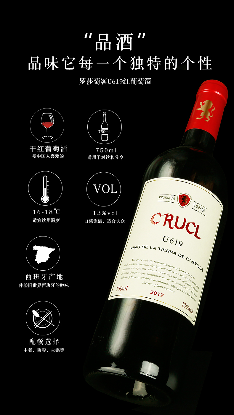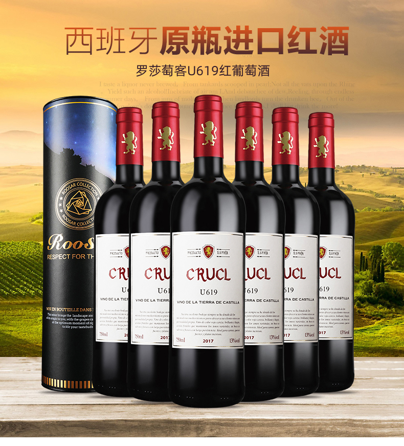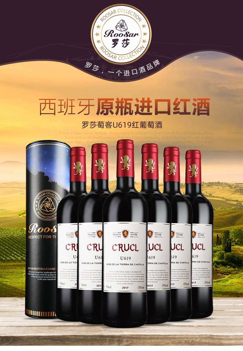 【官方正品】罗莎西班牙原瓶进口葡萄酒红酒整箱萄客R209干红6支