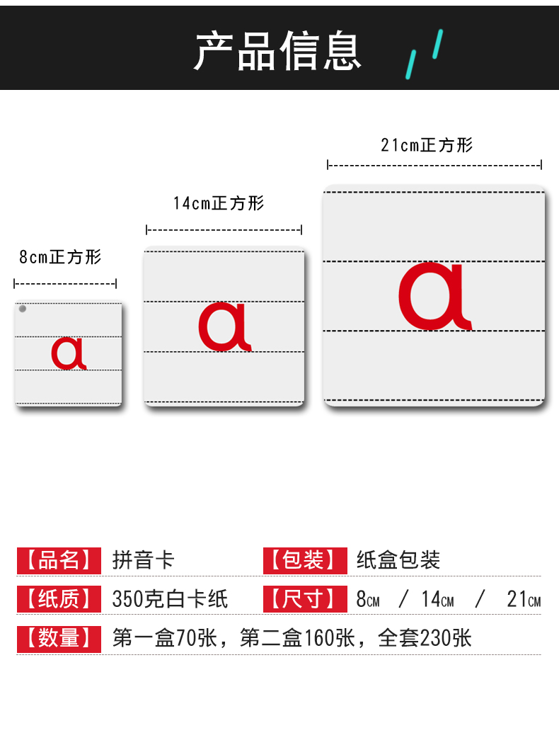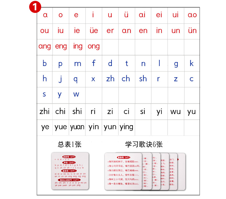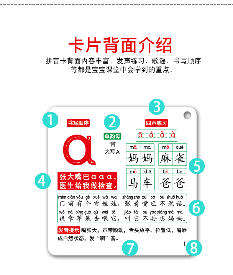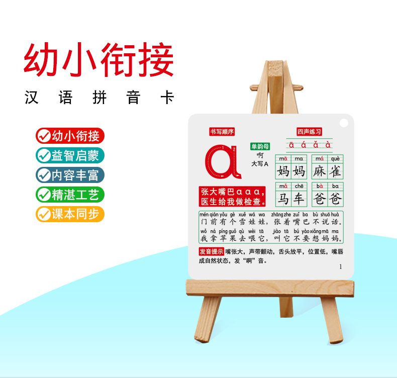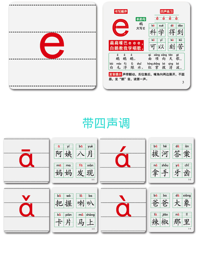 开心宝贝 汉语拼音卡片 带四声调一年级小学生学习幼儿园儿童aoe