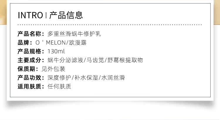 O'MELON/欧漫露修护乳液韩国正品 大瓶按压式蜗牛乳霜补水 专柜