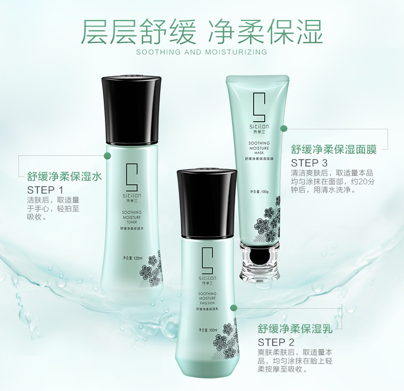 诗蒂兰保湿水+保湿乳+保湿面膜平衡油脂,舒缓敏感,修复肌肤,平滑细纹,步步精华护肤,拒绝单一,更多选择,蕴含多种天然植物精华,深度补水,持久保湿,收缩毛孔,淡化细纹,释放你的美,你值得拥有!