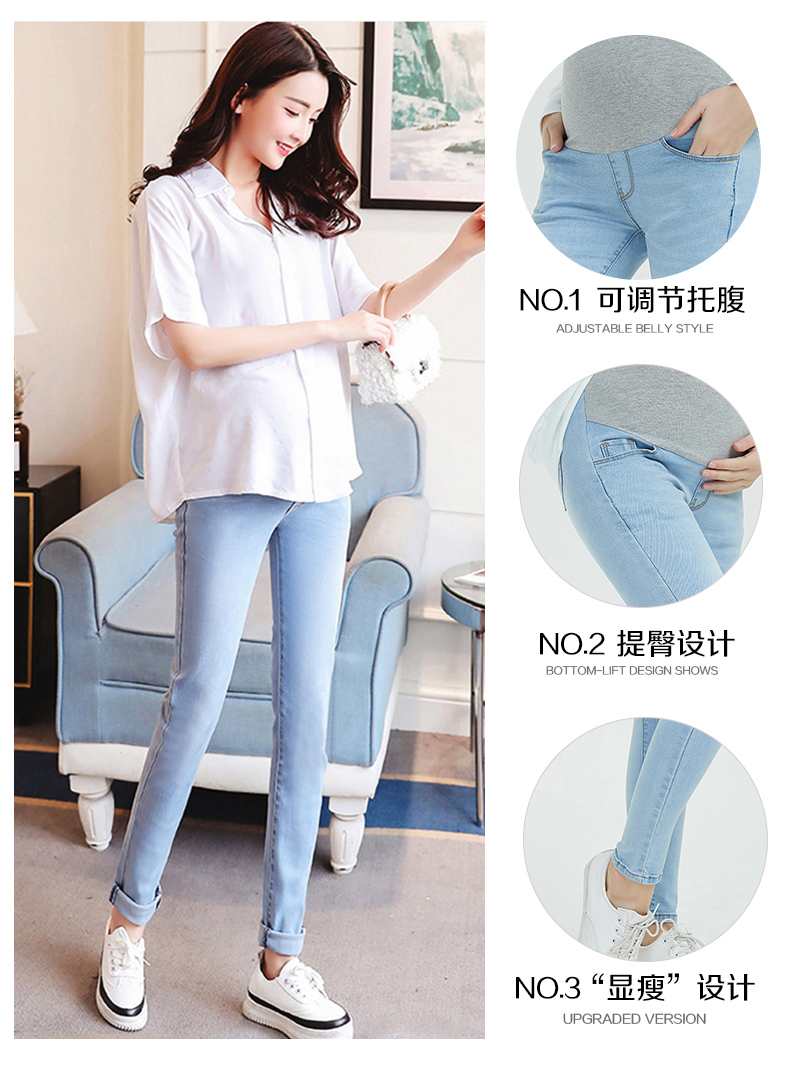 孕妇裤2019新款时尚孕妇牛仔裤春秋款孕妇修身裤子潮妈打底裤夏装