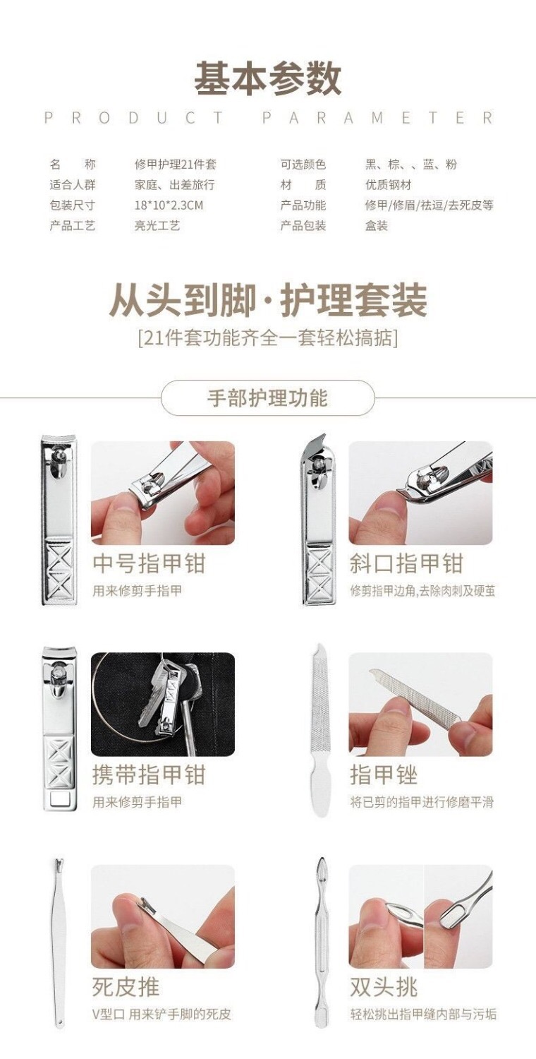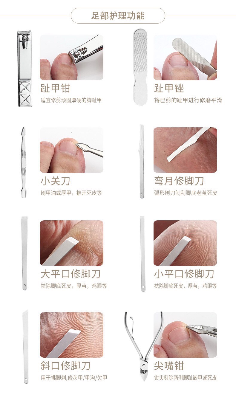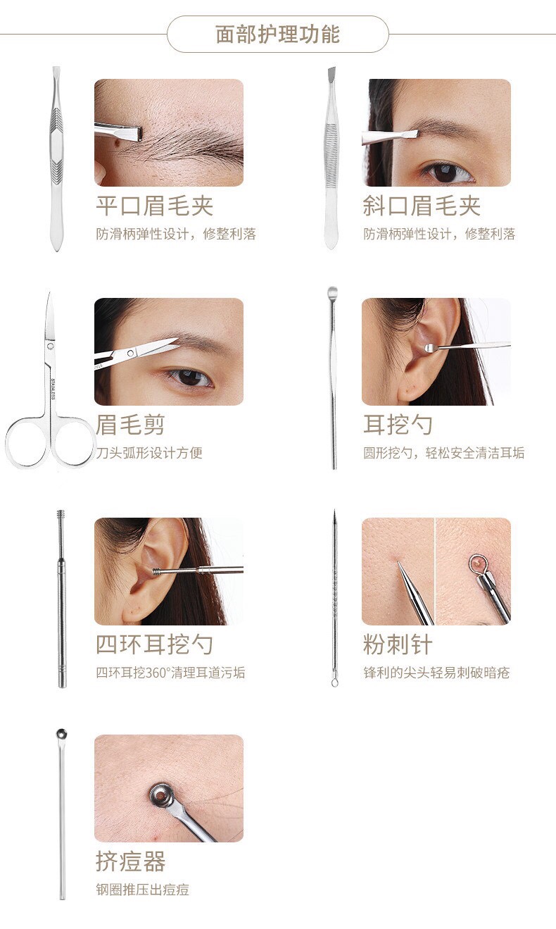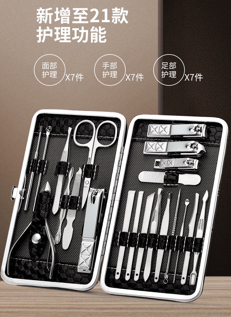 新款不锈钢指甲刀工具套装,时尚、小巧、便携8件套,平口指甲剪,斜口指甲刀,耳勺,优质碳钢,坚固耐磨,功能齐全,锋利好用,轻巧易便携。超实惠,易携带,居家送礼必备