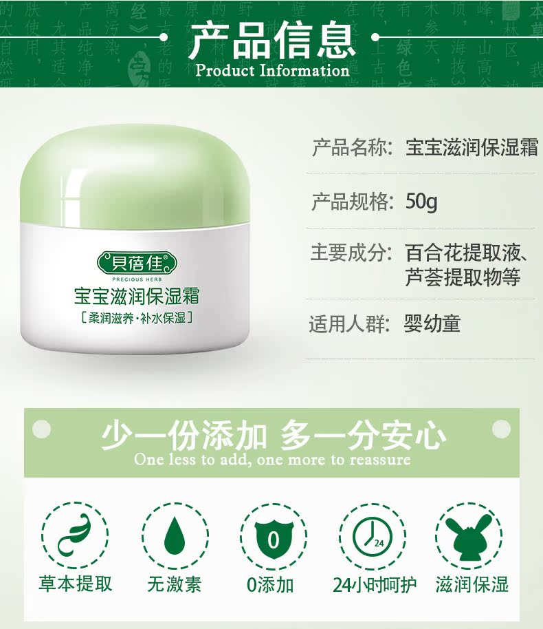 贝蓓佳正品滋润保湿霜新生儿儿童婴儿面霜保湿补水润肤乳护肤乳液
