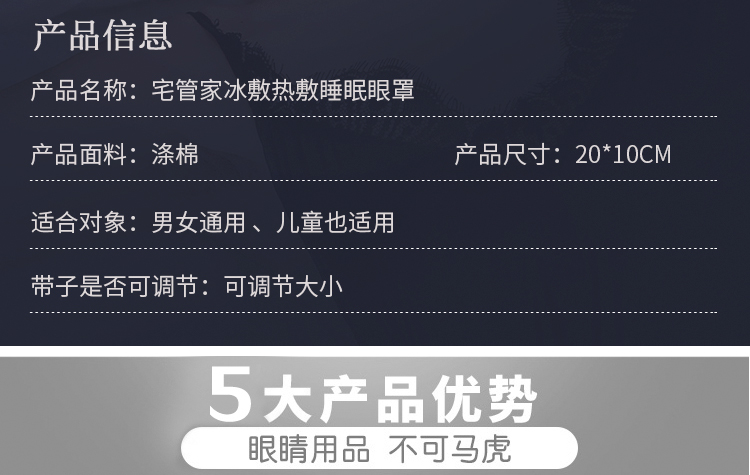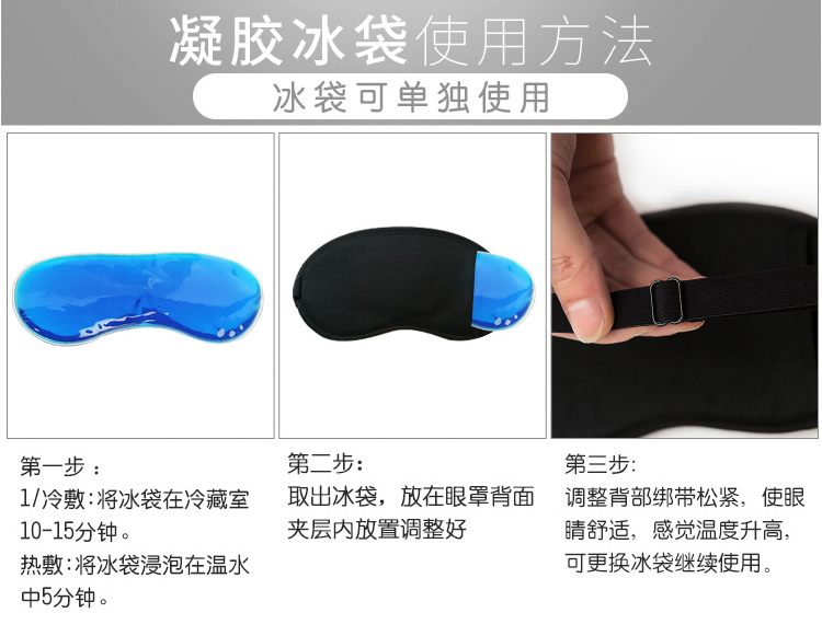 冷热两用,赠送冰袋,耳塞,用眼过度的,经常玩手机老铁们,要注意了!告别眼疲劳、熊猫眼有救了,戴着超舒服的,缓解眼睛酸涩,让你晚上睡得更舒服哟~