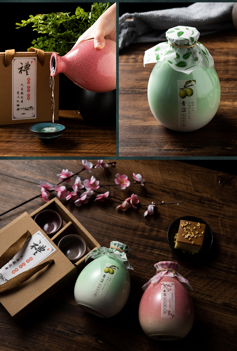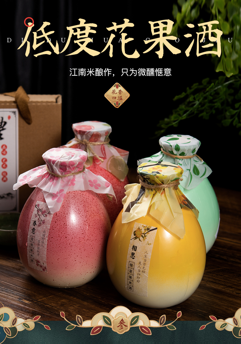 桃花酒果酒自酿青梅酒蜜柚子酒桂花酿花果酒女士低度甜酒古风酒瓶