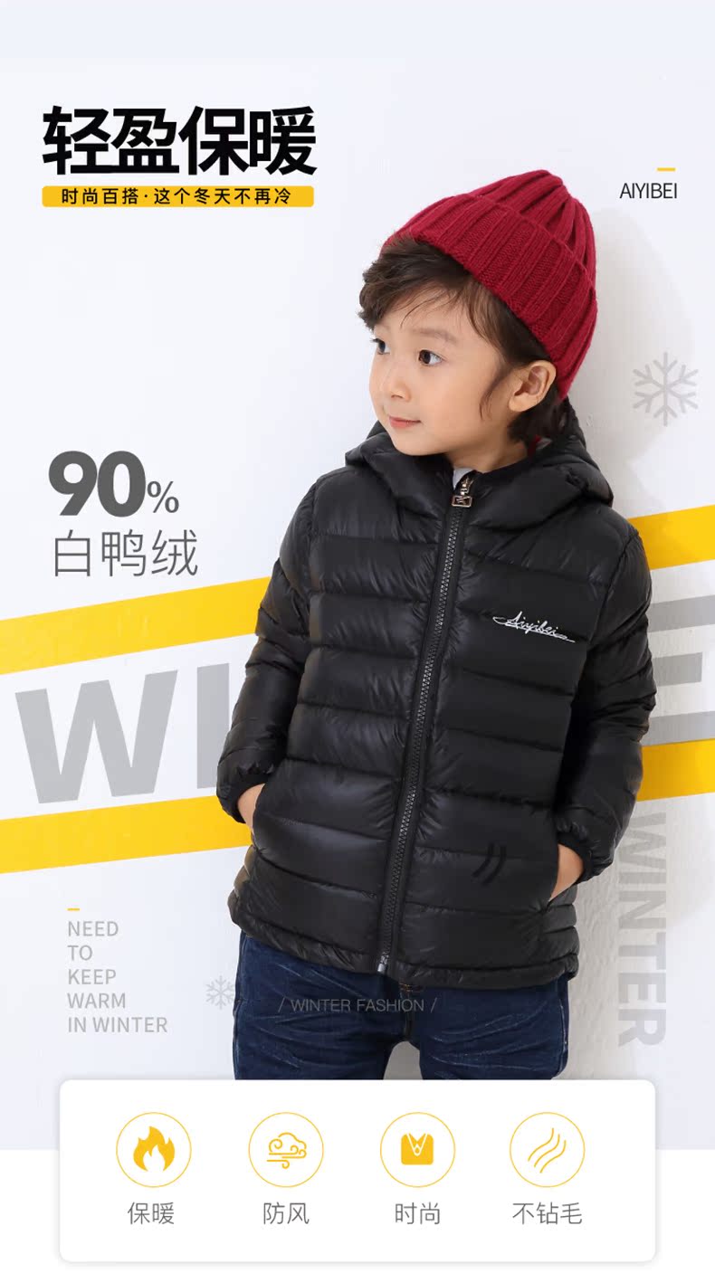 童装2019新款男童休闲时尚保暖洋气儿童羽绒服男女童轻薄白鸭绒