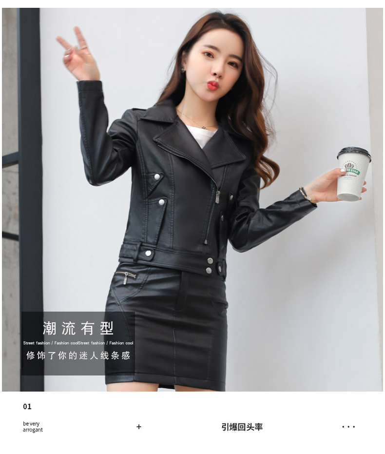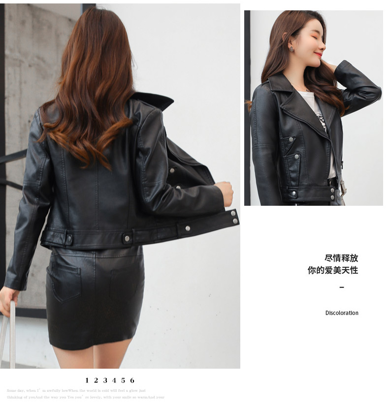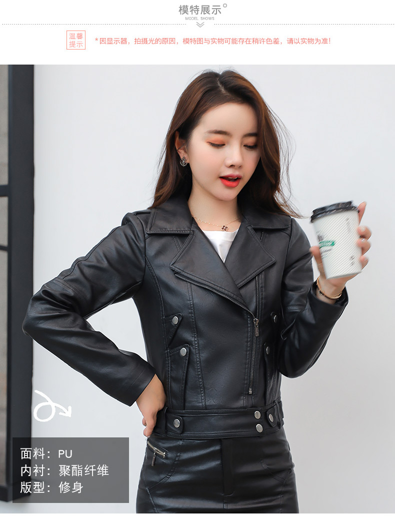 柔软舒适PU皮,细腻柔滑,无异味,宽松显瘦,休闲时尚,小宽松版型,大翻西装领修饰脸型,时髦的机车皮衣让你变身街ICON【赠运费险】