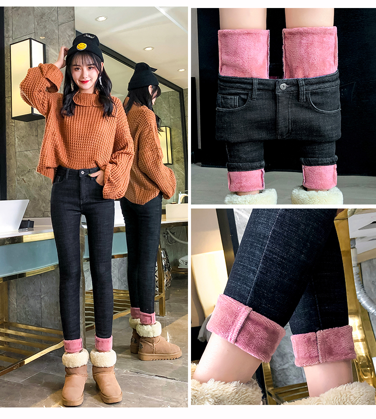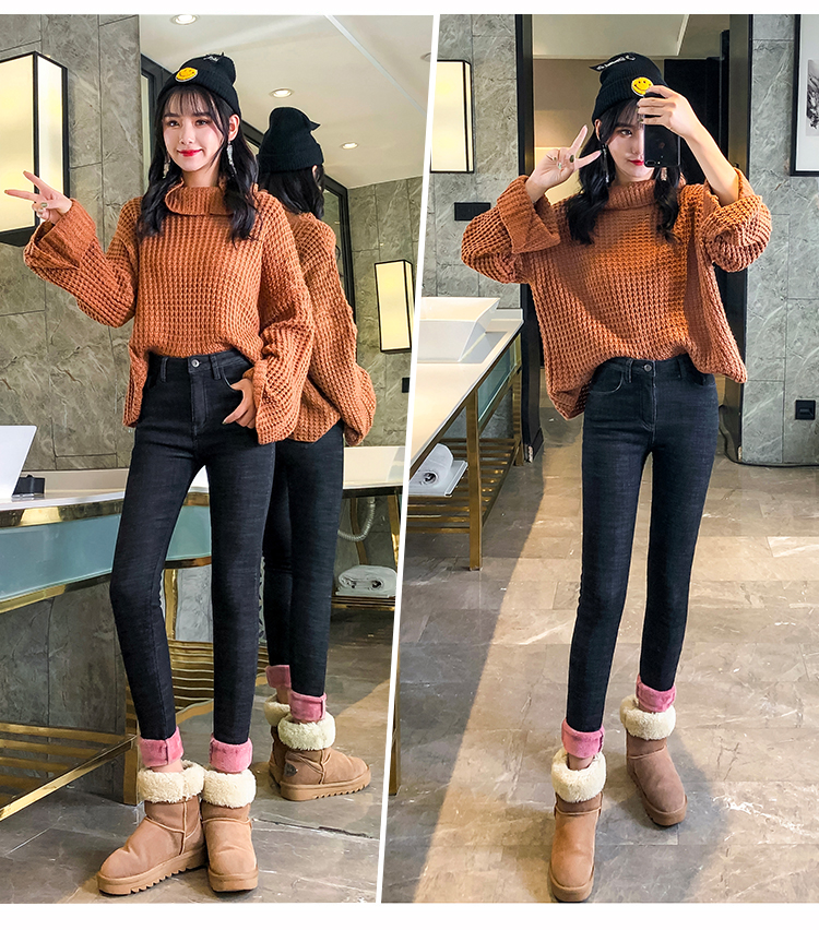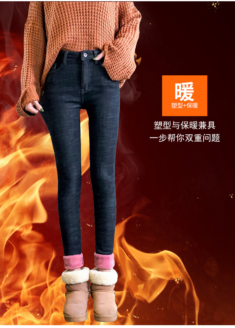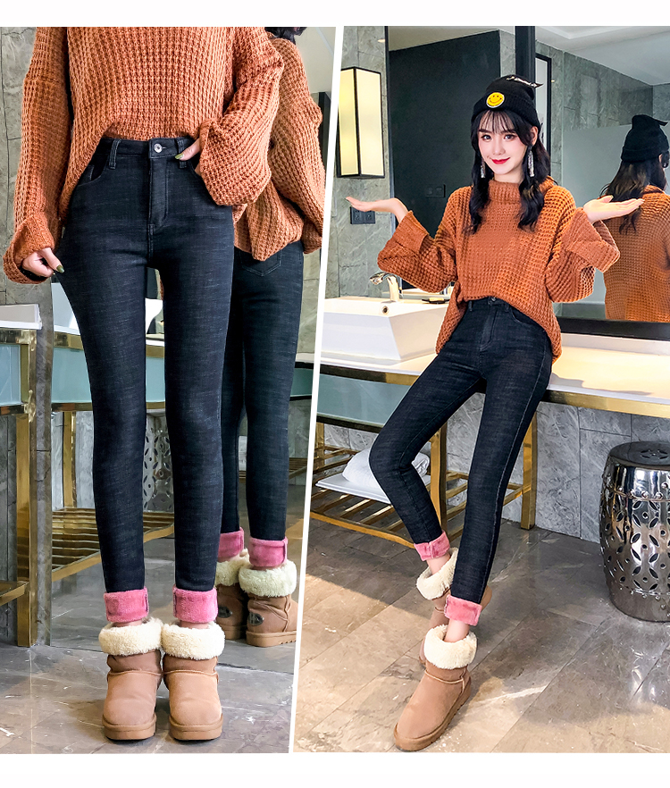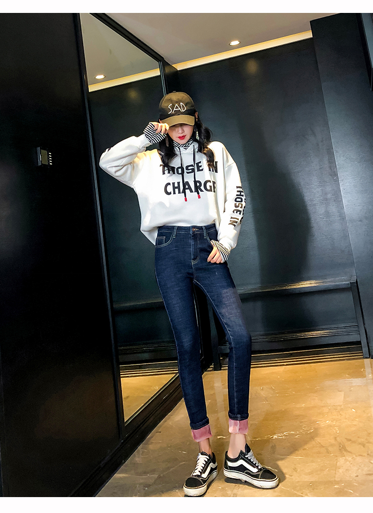 牛仔裤女修身显瘦2019秋冬新款长裤加绒九分高腰弹力小脚女裤子潮