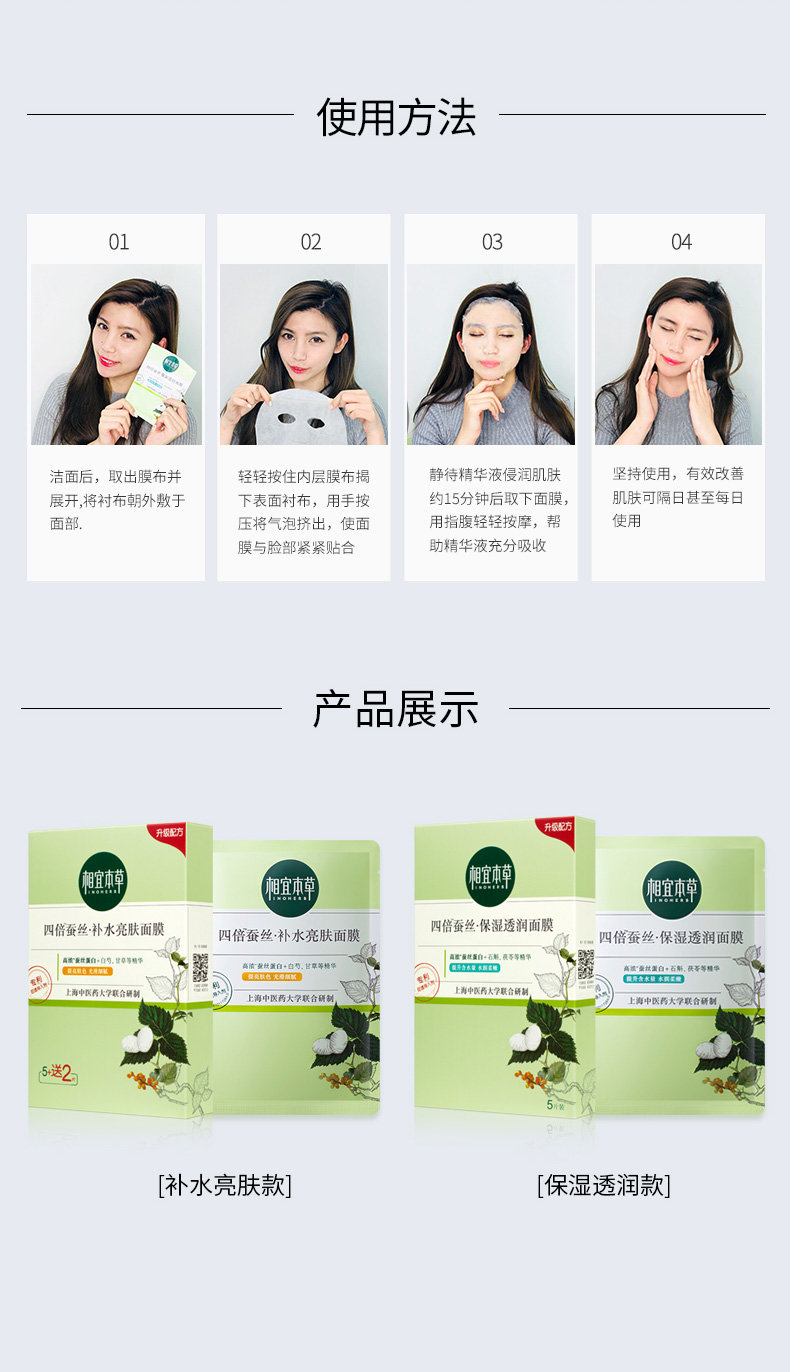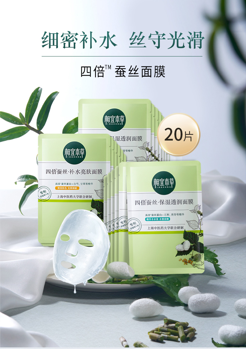 相宜本草面膜四倍蚕丝补水保湿免洗收缩毛孔紧致学生女官方旗舰店