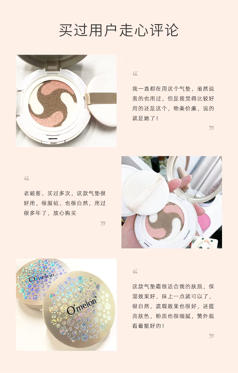 【第二件7折】omelon欧漫露韩国进口品牌,丰富植物精华,滋养润肤;旋转三色精华,遮瑕调色,持久定妆。透感裸妆,高密度,轻薄,不吸粉,扑出粉嫩美肌~【赠运费险】