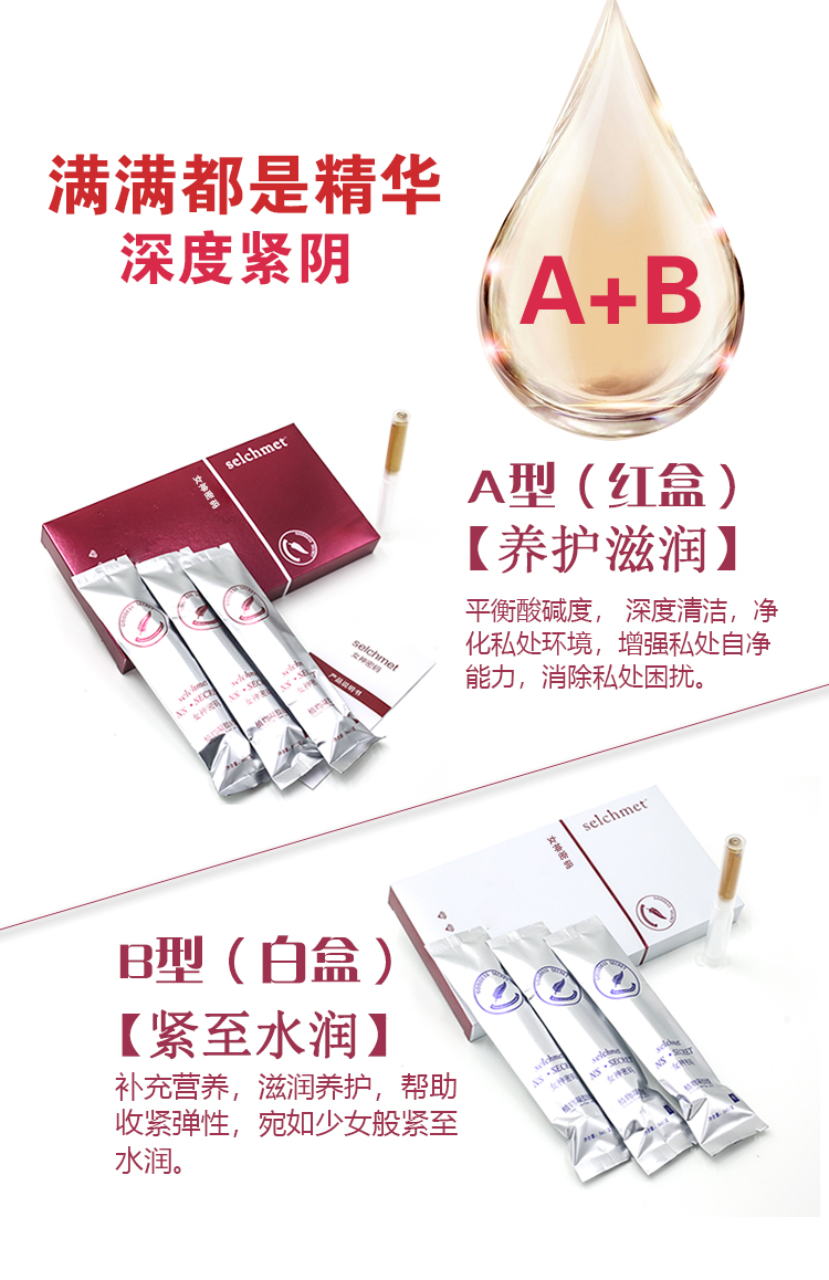 女神密码A+B草本精华,A型.养护滋润,平衡酸碱度,深度清洁,净化私处环境,增强私处自净力度,消除私处困扰。B型.紧至水润,补充营养,滋润养护,帮助收紧弹性,宛如少女般紧至水润。让男人重新爱上你。