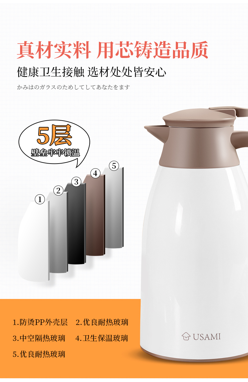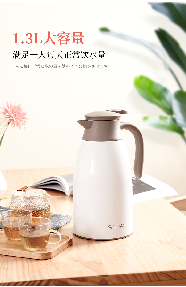 USAMI日式家用水瓶大容量1.3L保温壶学生宿舍暖水瓶热水壶保温瓶