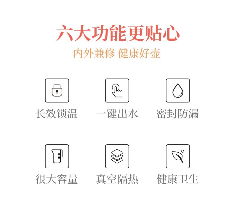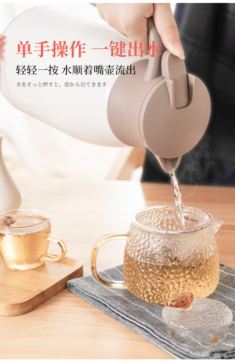 外观非常潮流,采用真空玻璃内胆,24小时长效保温!保冷保热一壶搞定,一键出水非常方便,是您居家生活的好帮手!