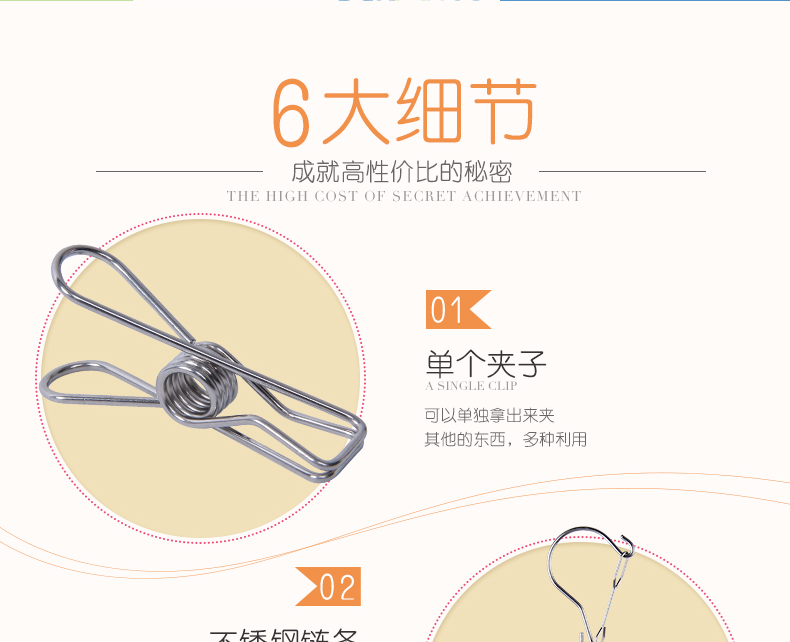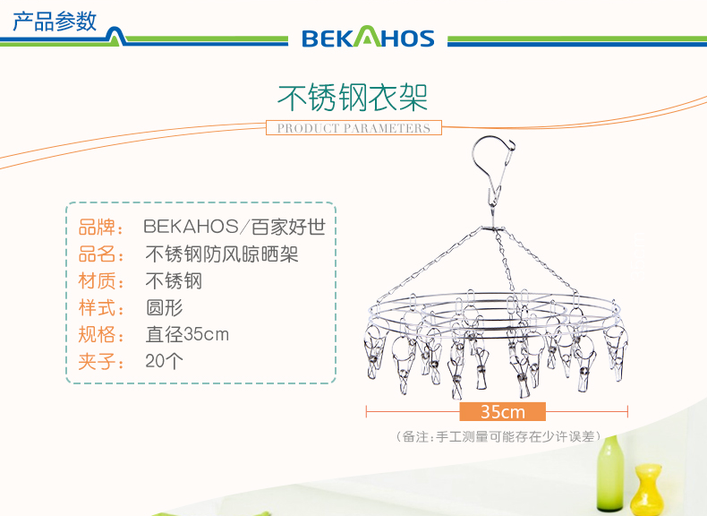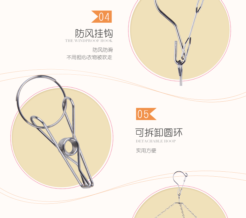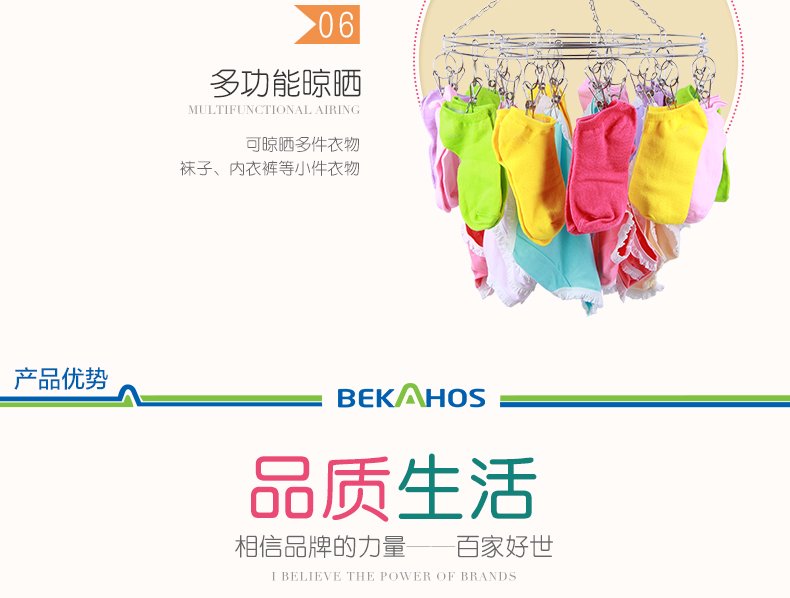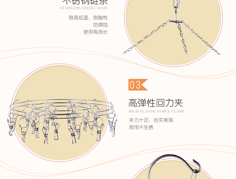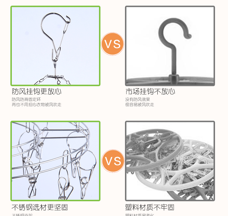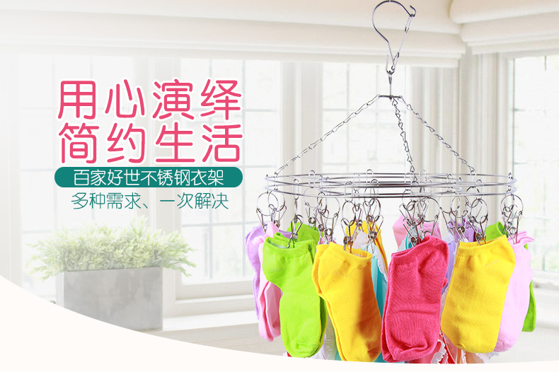 百家好世晾袜架夹不锈钢晒多夹子内衣毛巾凉袜子防风圆形衣架20夹