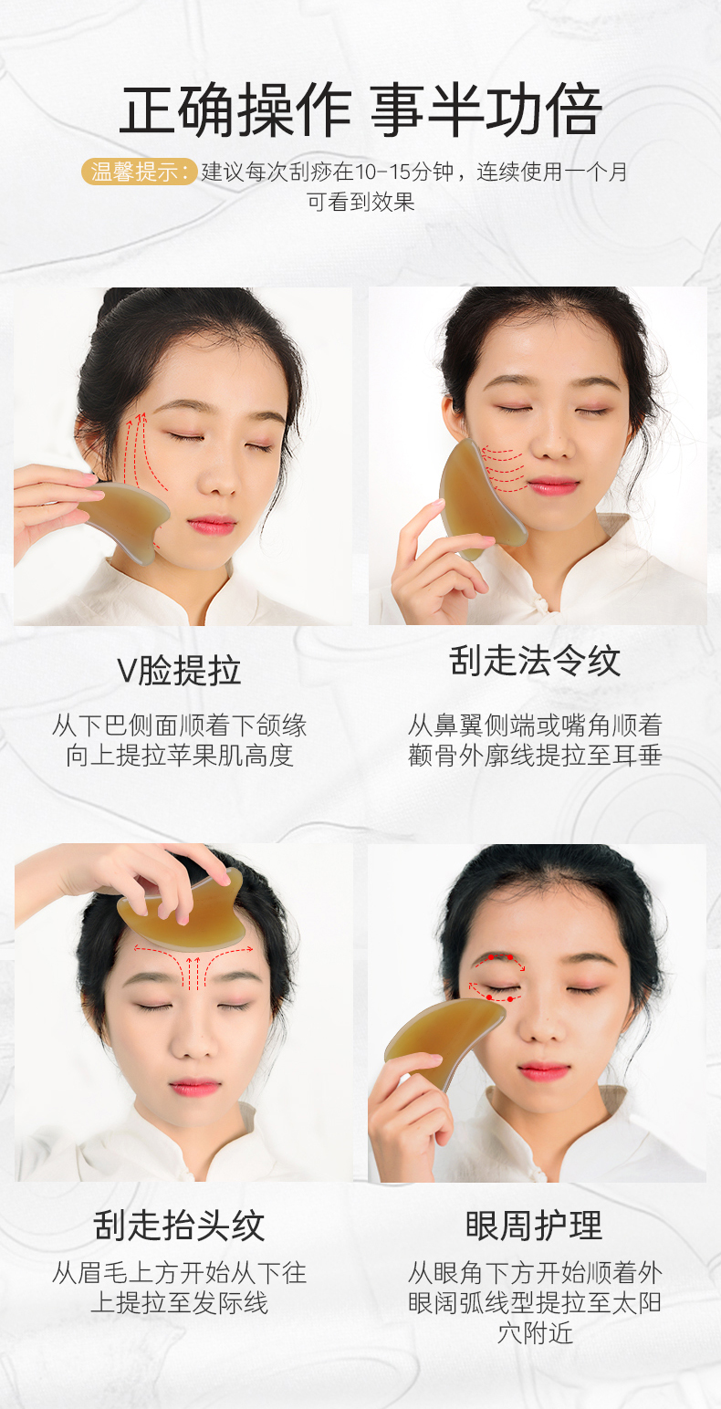 脸部刮痧板天然白水牛角刮脸神器面部美容淋巴排毒眼部专用拨筋棒