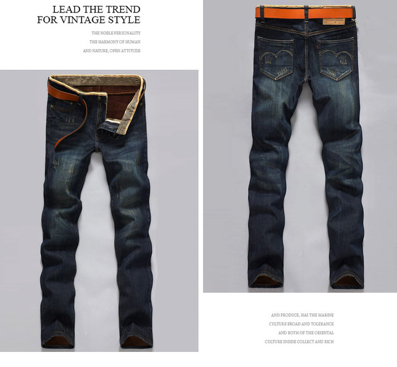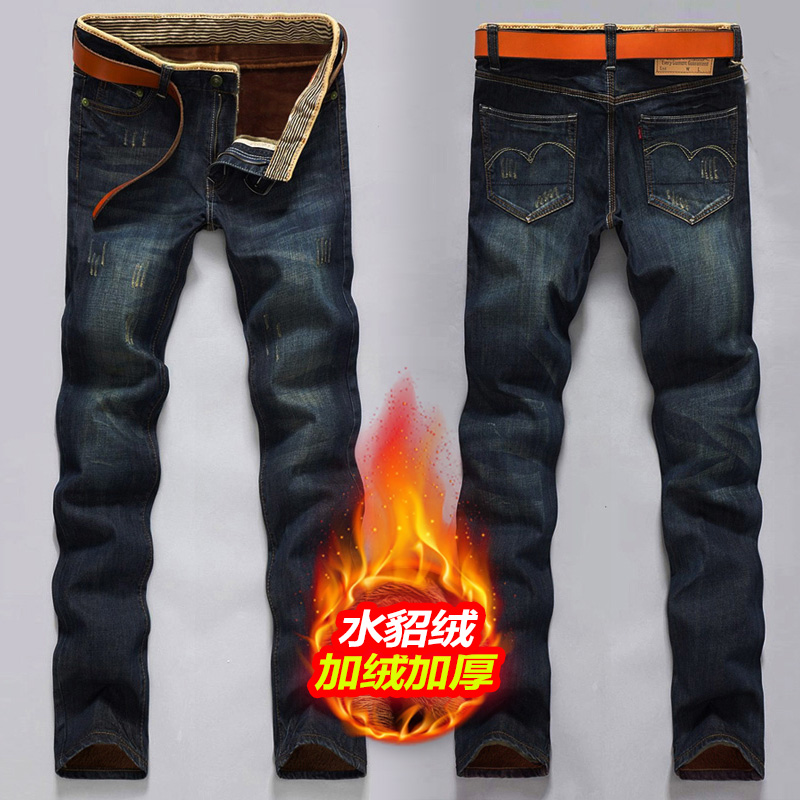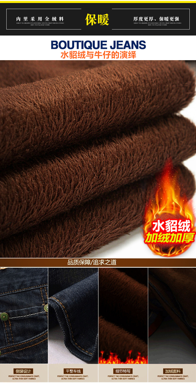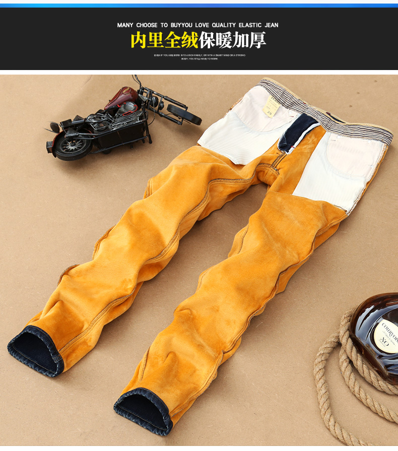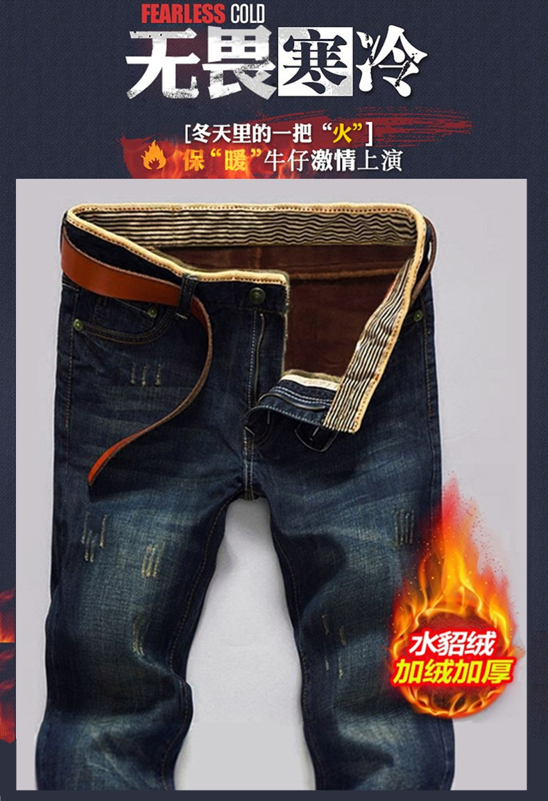 男士牛仔裤子加绒加厚外穿冬天修身直筒小脚带绒青年2019秋冬新款