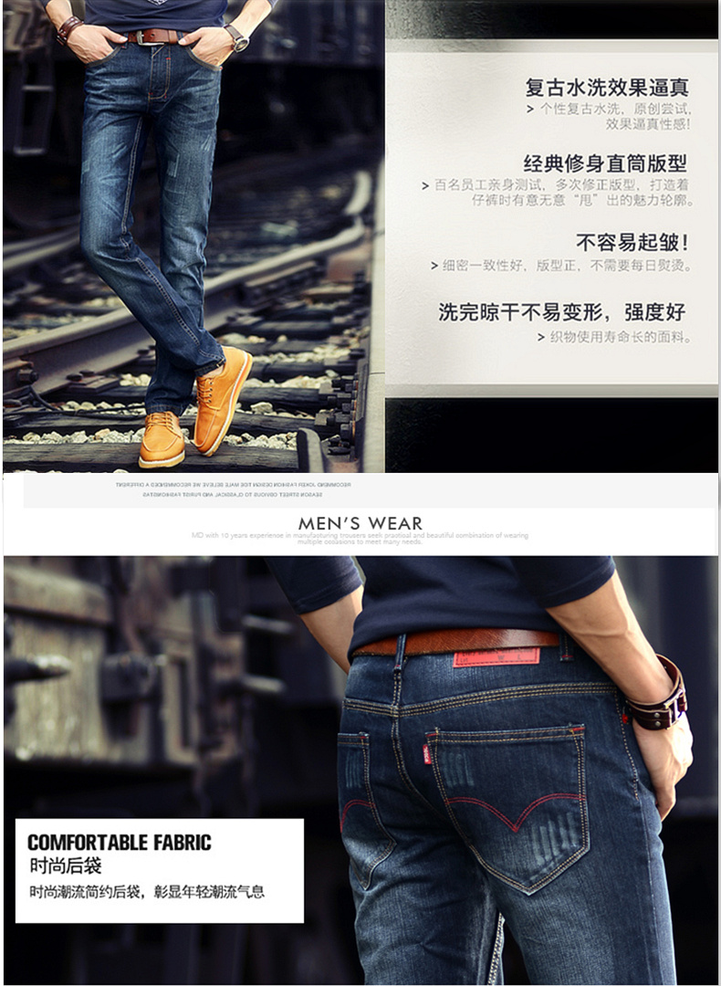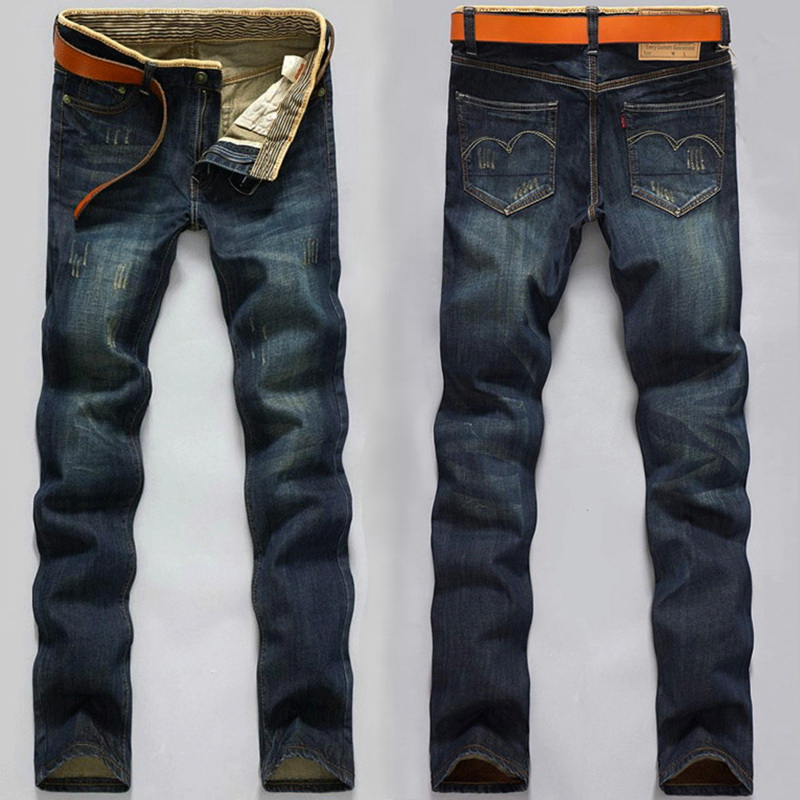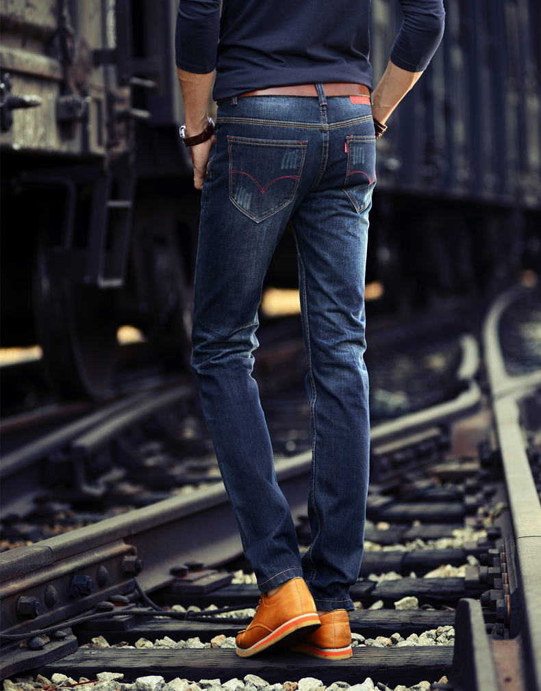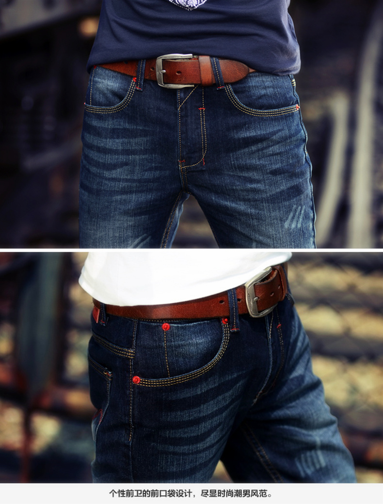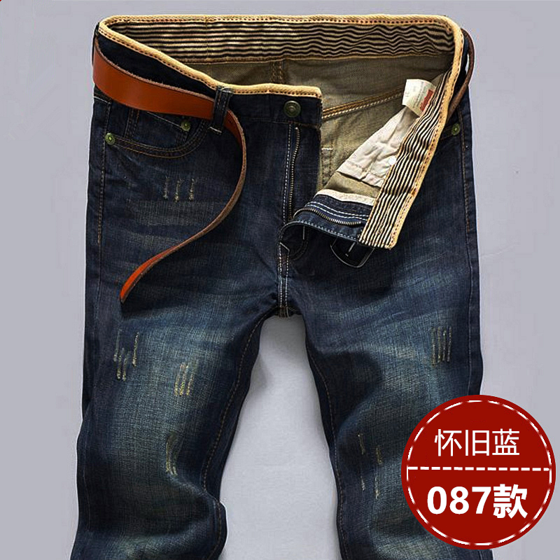 男士牛仔裤子加绒加厚外穿冬天修身直筒小脚带绒青年2019秋冬新款