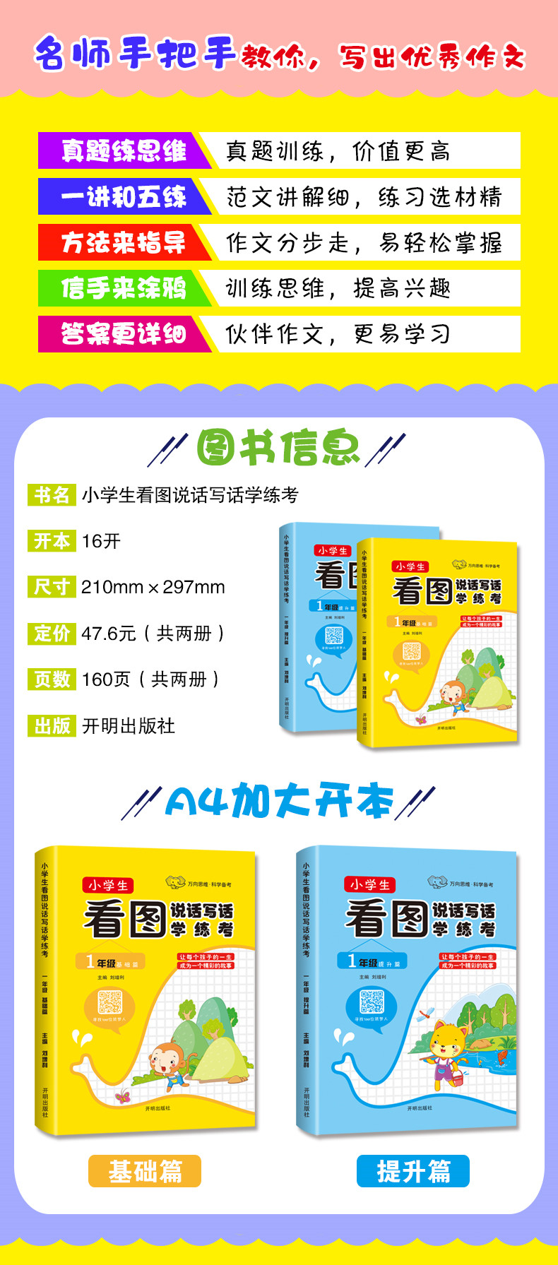 【老师推荐】超厚版2本小学生1年级,练习用真题,名师指导孩子清楚表达、生动写作,真题训练,轻松实用,训练思维,提高兴趣,一学就会,轻松写作!