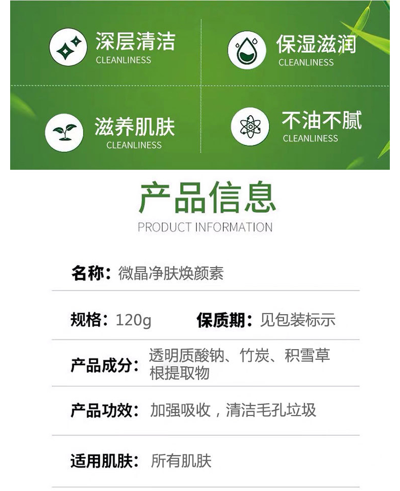 【抖音爆款第二件10元】净肤微晶焕颜乳,丰富竹炭微粒子,深层清洁毛孔垃圾,去黑头+美白+祛痘印+控油+收缩毛孔,促进胶原蛋白再生!排毒养颜,滋养肌肤,还肌肤净透细腻。