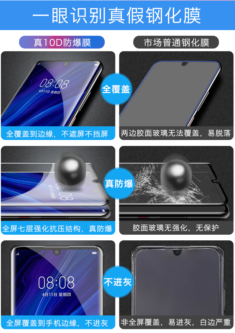 真10D全屏钢化膜【2片装】华为系列钢化膜送贴膜神器*10豪礼,新升级不碎边,防爆玻璃膜,触感升级,3DTouch更灵敏,自动吸附无气泡,防尘不进灰,不留指纹!