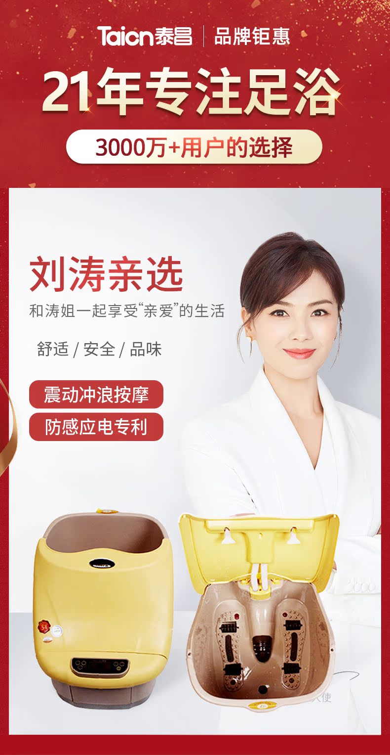 【刘涛代言,泰昌品牌】经典款,可用10年。品质保证,全自动震动按摩,高深桶,电笔点不亮,更安全。1键启动,智能恒温加热,全方位按摩穴位,【正品保证】 旗舰店同款329元。本店领100元券