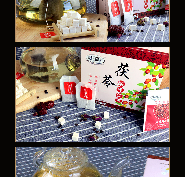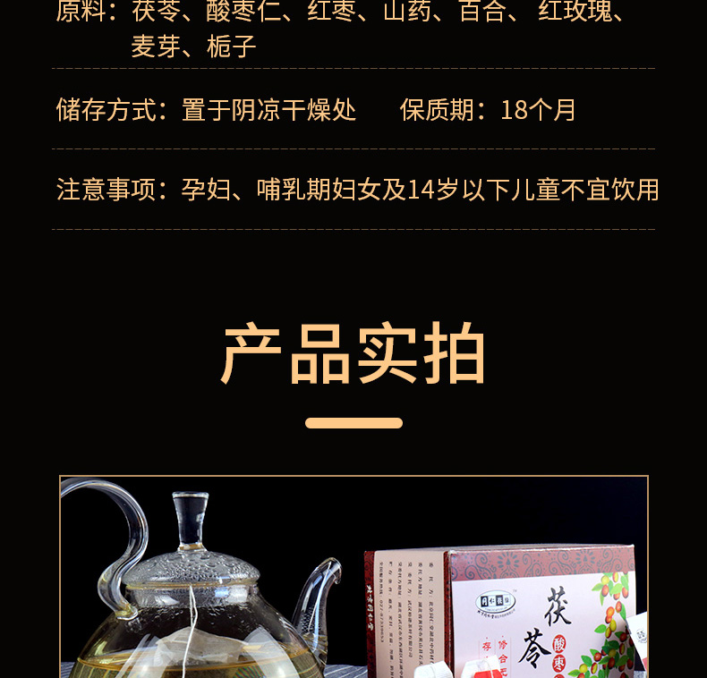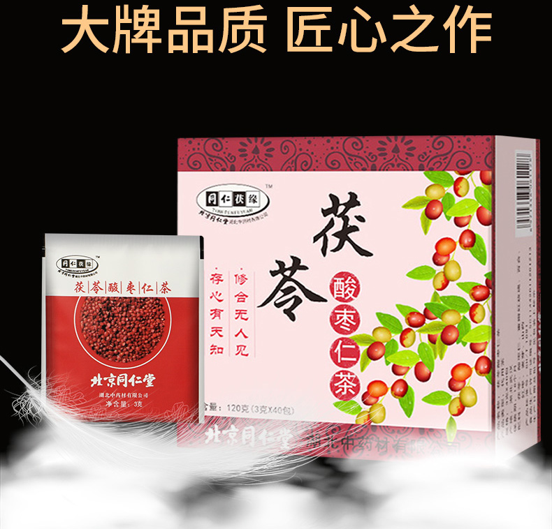 同仁堂正品茯苓酸枣仁茶百合安神助膏睡眠酸枣仁丸梦灵粉男女z