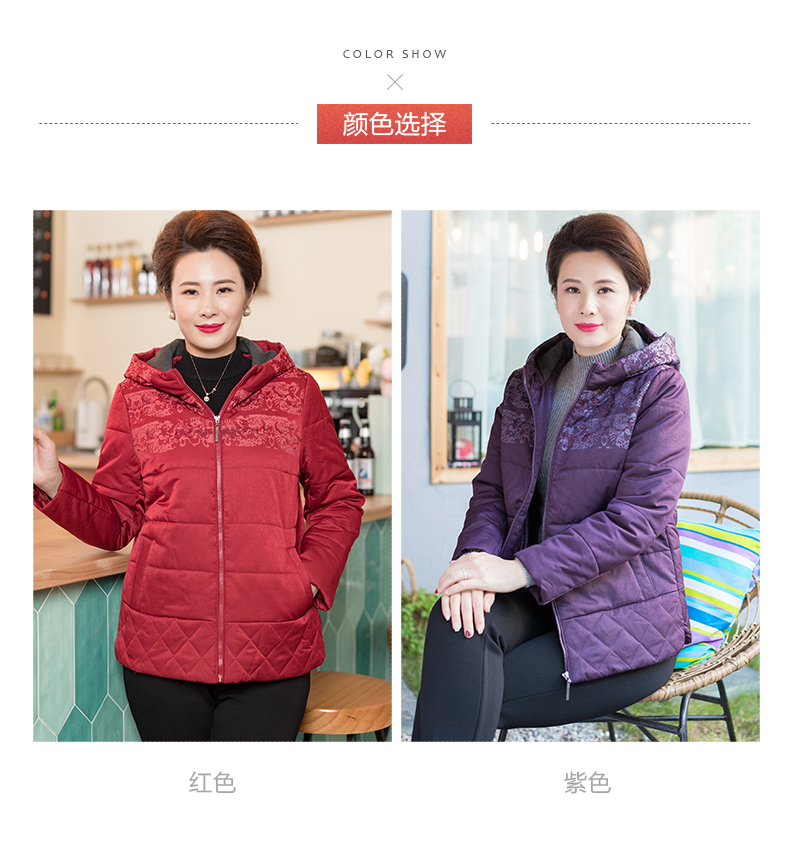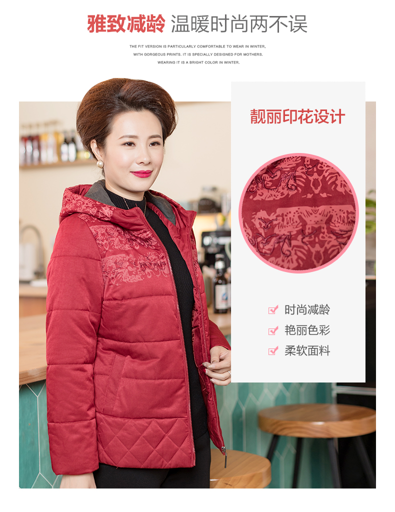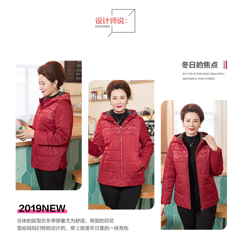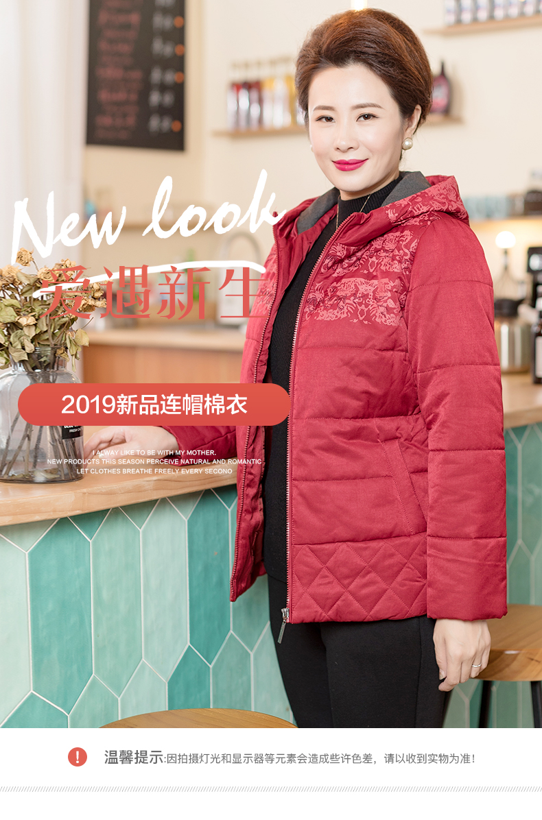 依布2019新品妈妈冬装外套棉服中老年女装保暖休闲外套加厚棉袄