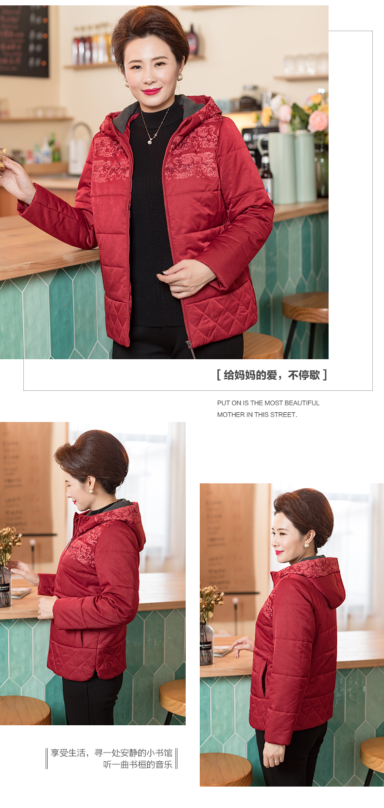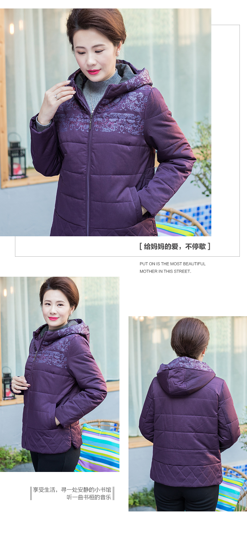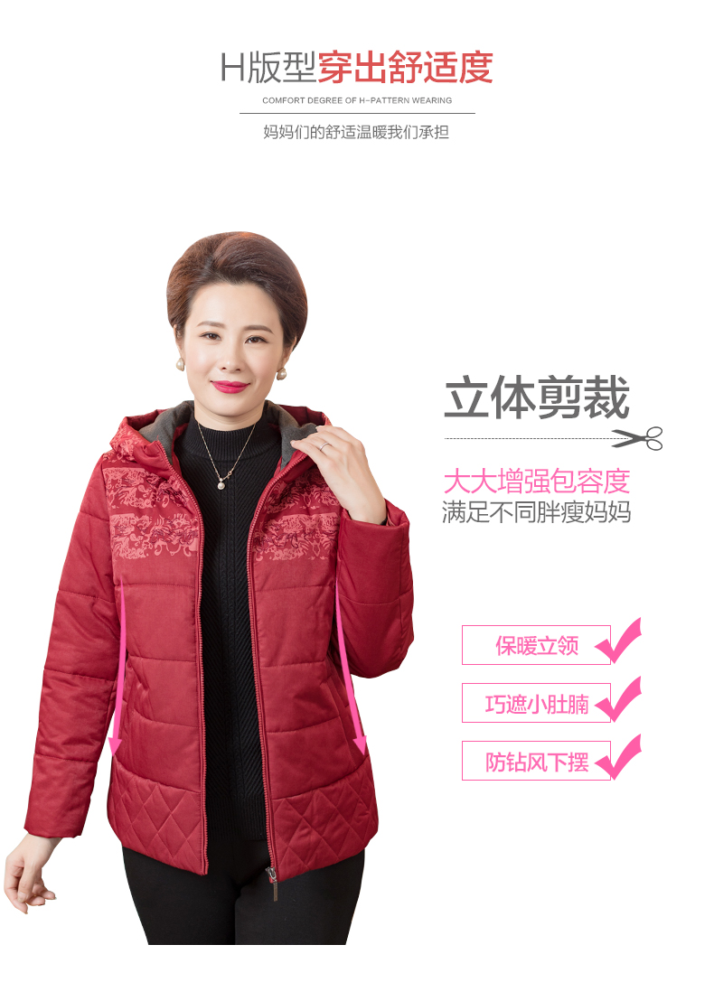 依布2019新品妈妈冬装外套棉服中老年女装保暖休闲外套加厚棉袄