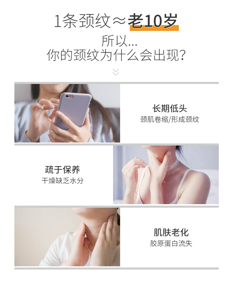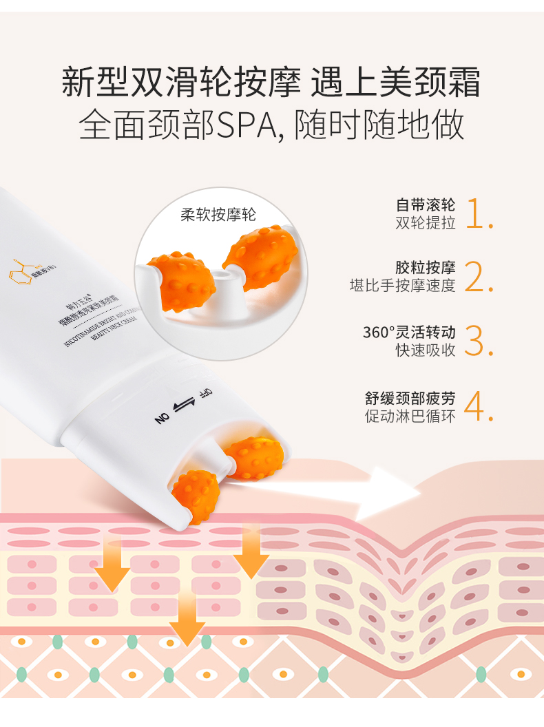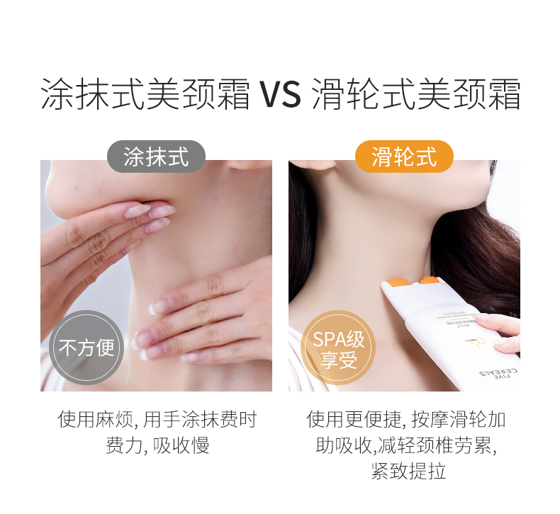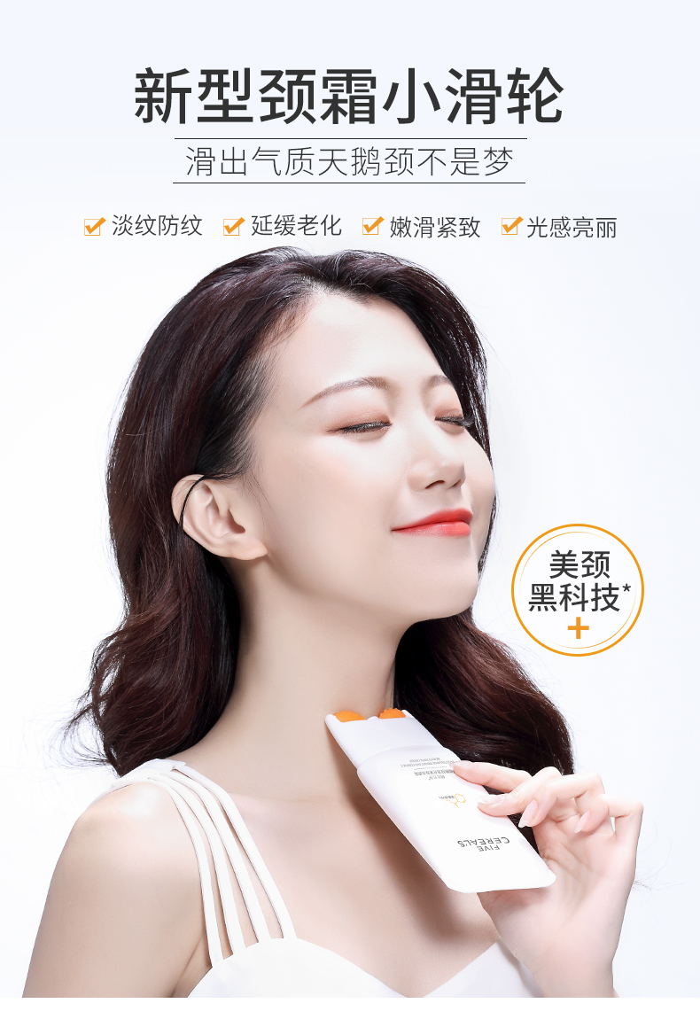 常年只做面部护理?颈纹出卖年龄?创新V型双滚轮美颈霜,还你天鹅颈!蕴含多肽成分紧致皮肤,V型双滚轮56个触点设计,贴合颈部,按摩提拉,全脸可用,还有瘦脸效果!每天在家做SPA级护理!
