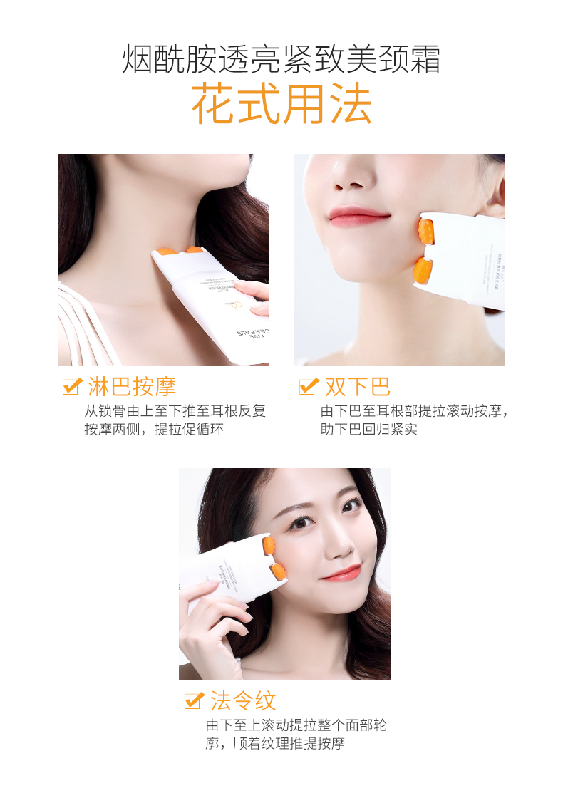 韩方五谷烟酰胺双滚轮V型美颈霜提拉紧致去淡化颈纹颈部护理颈膜