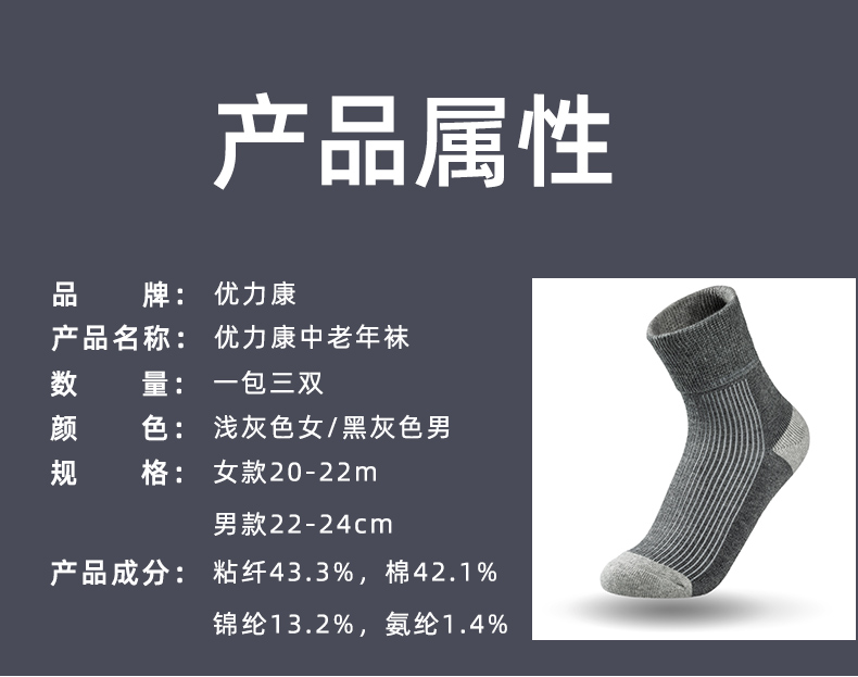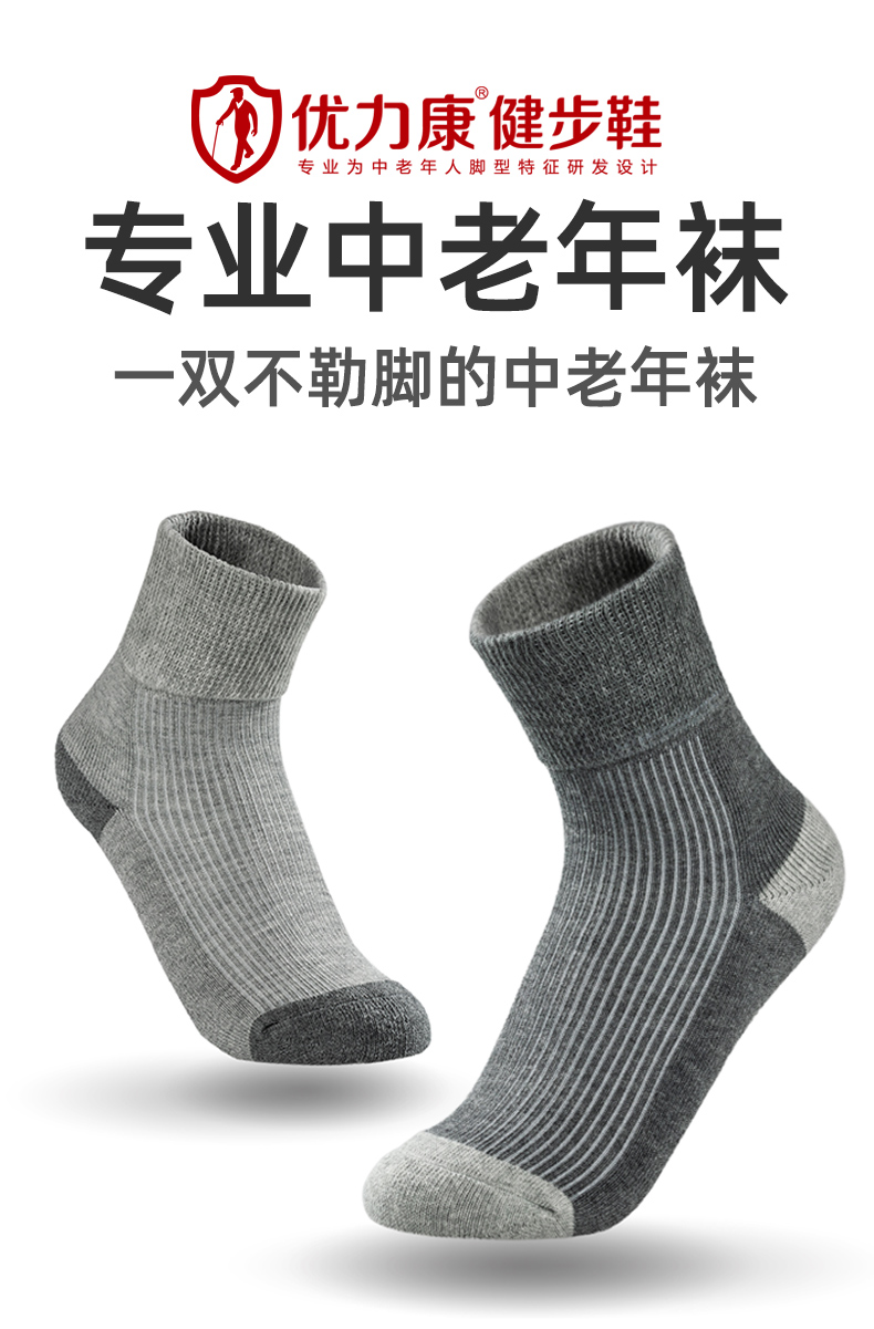 优力康老人袜子秋冬女3双松口中老年人中筒厚款棉袜男保暖运动袜