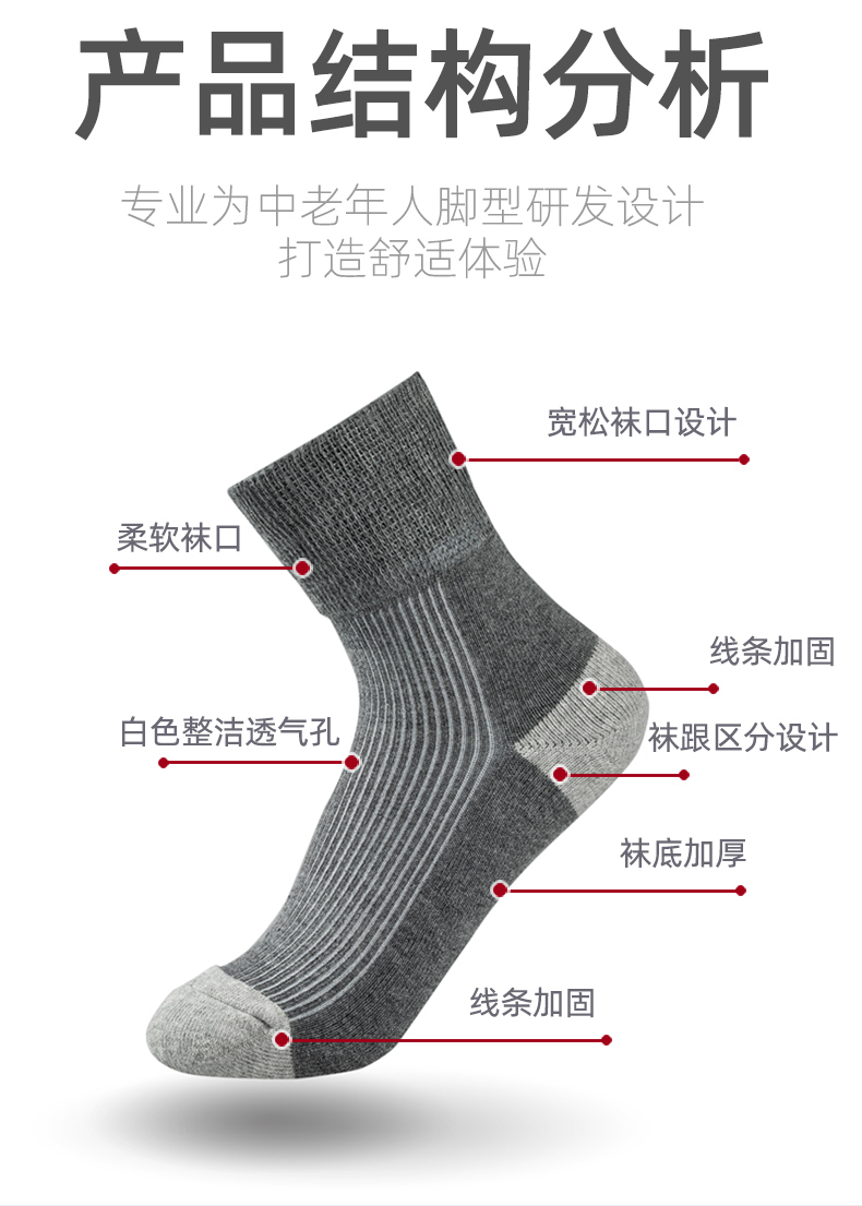 优选新疆精梳棉,做工上乘,舒适柔软不勒脚,透气吸汗,让运动更舒畅!好品质看得见,好袜子送给父母