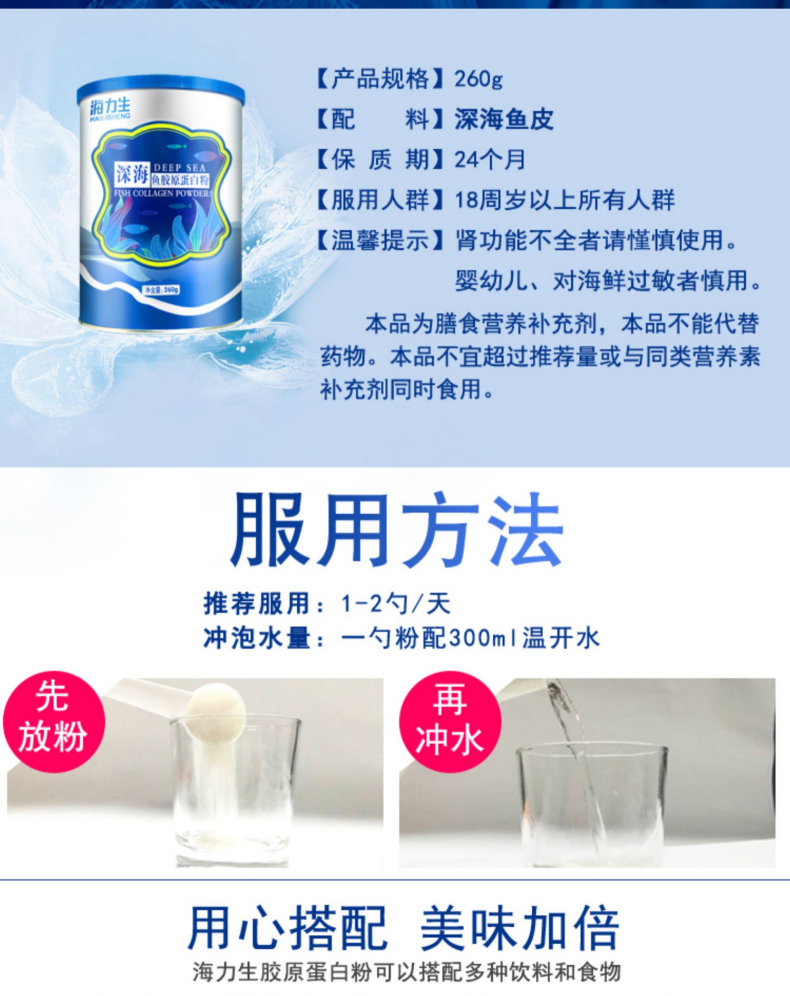 【买2送1】海力生鱼胶原蛋白水解粉260g蛋白肽精华粉非口服液正品