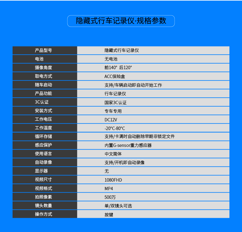 微光夜市加强、WIFI链接、实时查看、前后双录,拒绝厚重,拒绝杂乱,简洁大方,循环录影不漏秒,支持99.9%的车型,索尼高配镜头,一览众下!