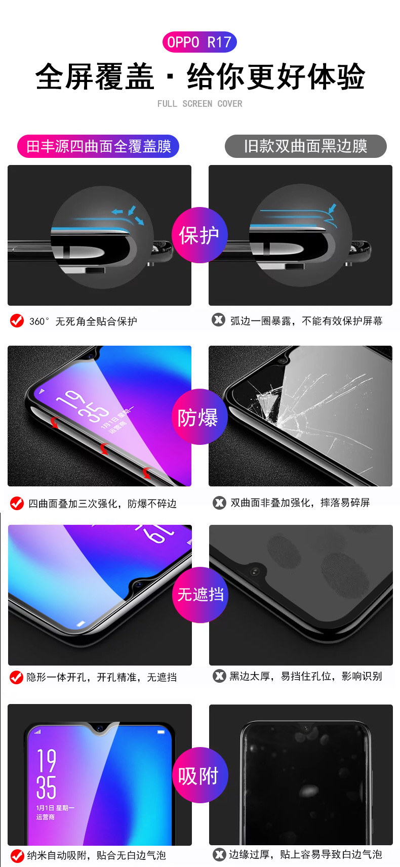 oppo R15钢化膜r17梦境版r9s贴膜r11/r11s膜全屏r9splus覆盖oppo r15x手机膜A3/a5/a57/a59s/a7x膜蓝光玻璃膜