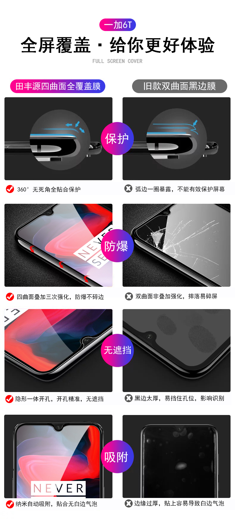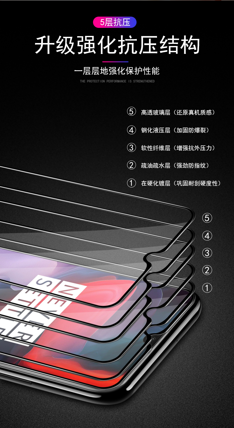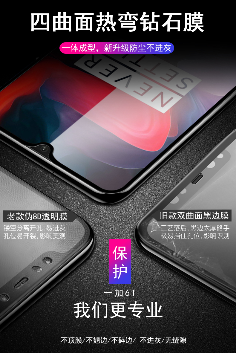 一加6t钢化膜全屏一加5t手机膜一加6覆盖oneplus一加六玻璃膜1加5一加3T防爆一加五全包一加3钻石膜1+6高清