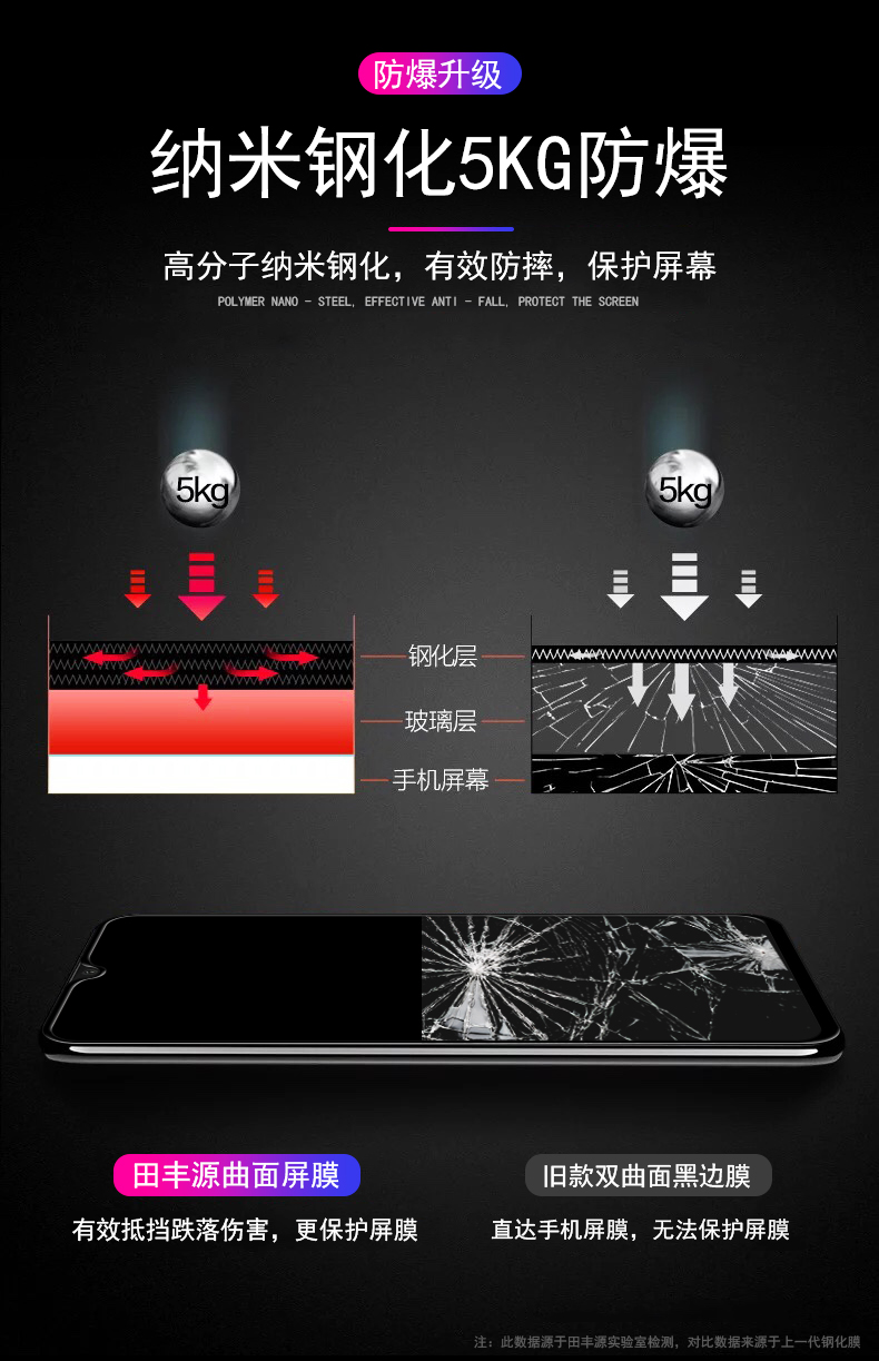 全屏覆盖6D钢化手机膜,高透高清,抗眩光,一贴自动吸附,还原裸机手感。