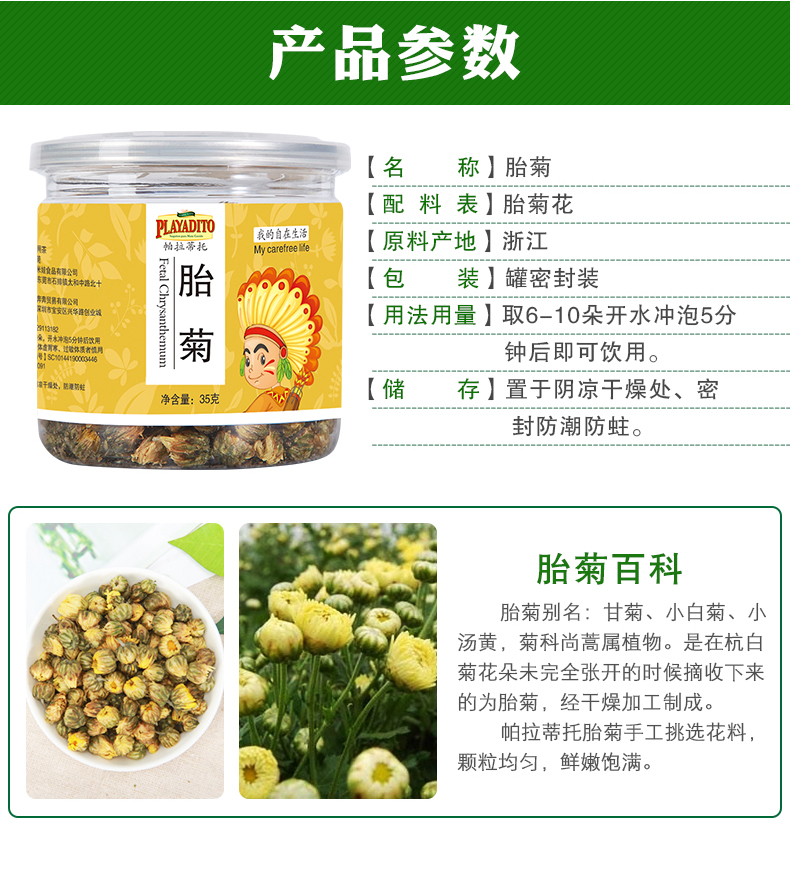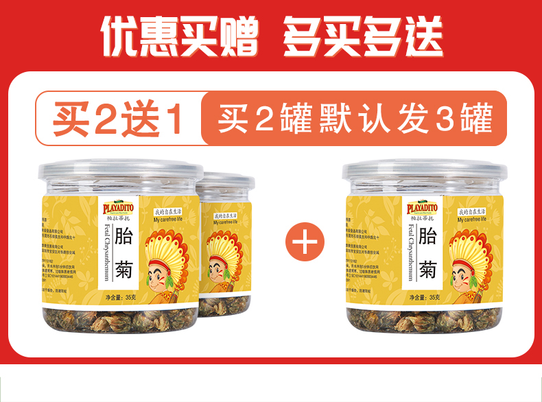 【买2发3】帕拉蒂托胎菊,非特级台菊搭枸杞,胖大海杭白菊,胎菊,花茶,买2送1,饱满均匀,花蜜清香,快下单购买。
