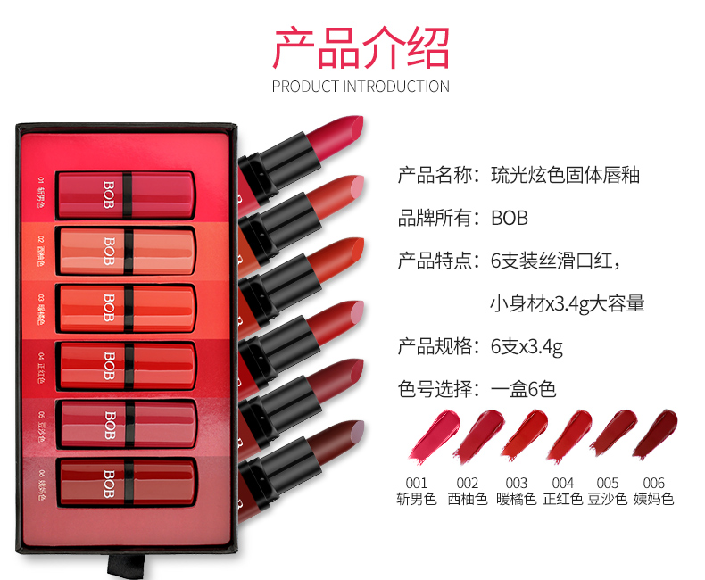 BOB正品口红套装组合套盒小样滋润保湿西柚色豆沙色礼盒装6支品牌