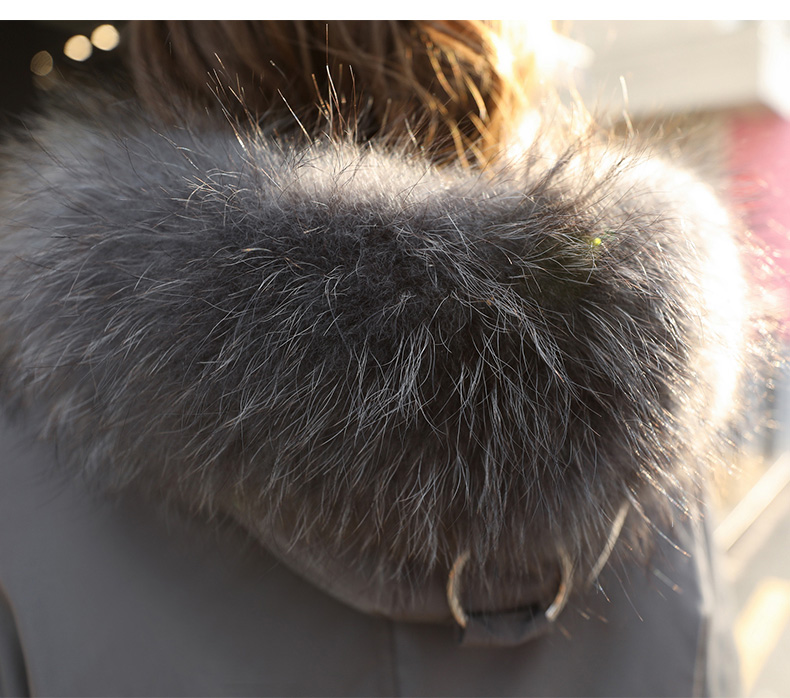 90%白鸭绒,时尚貉子大毛领,时尚有型御寒保暖。修身版型,抽绳的设计。4层防钻绒设计,穿着舒心!