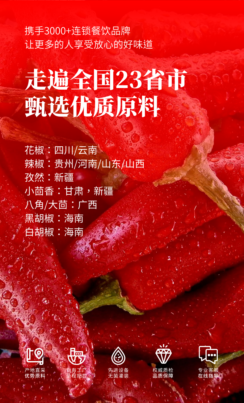 精选上等辣椒原料,口感饱满,鲜香美味,回味悠长,火锅及烧烤必备之蘸料,小袋包装方便干净,开袋即食,在家也能享受美味。