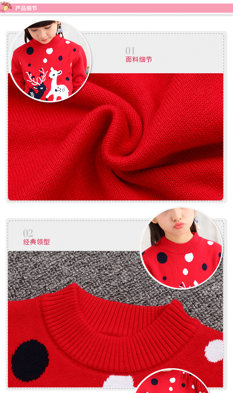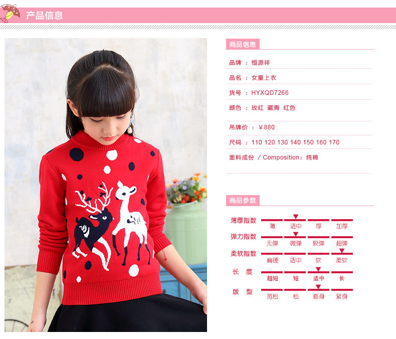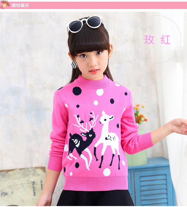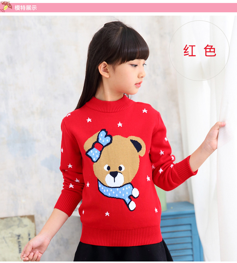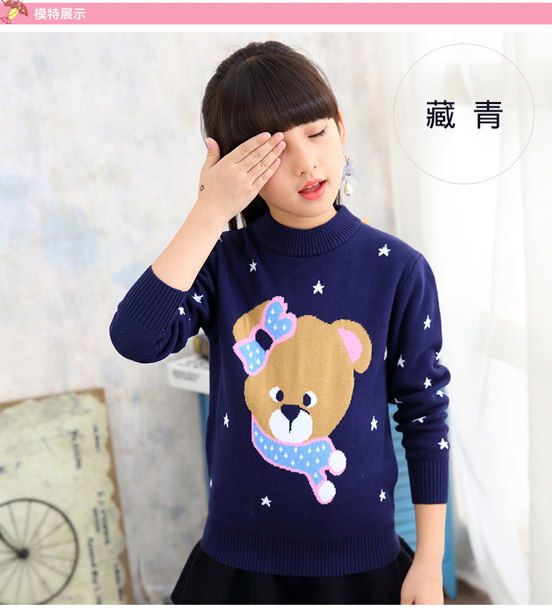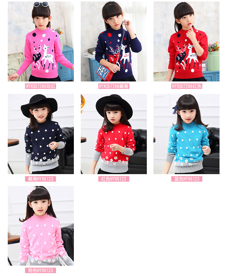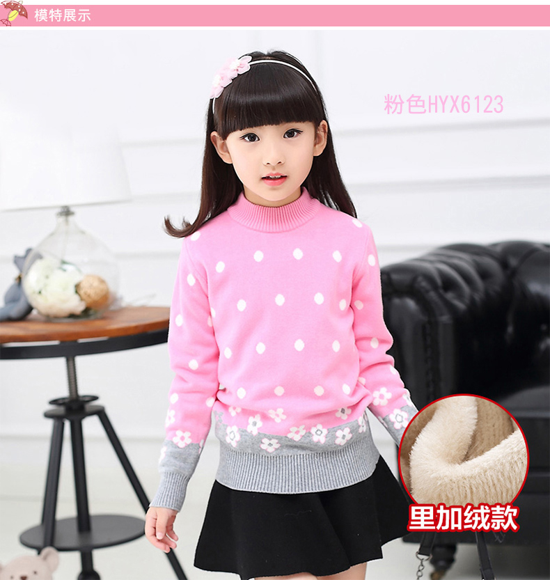 恒源祥2019新款女童毛衣加绒加厚针织半高领儿童打底衫女孩中大童
