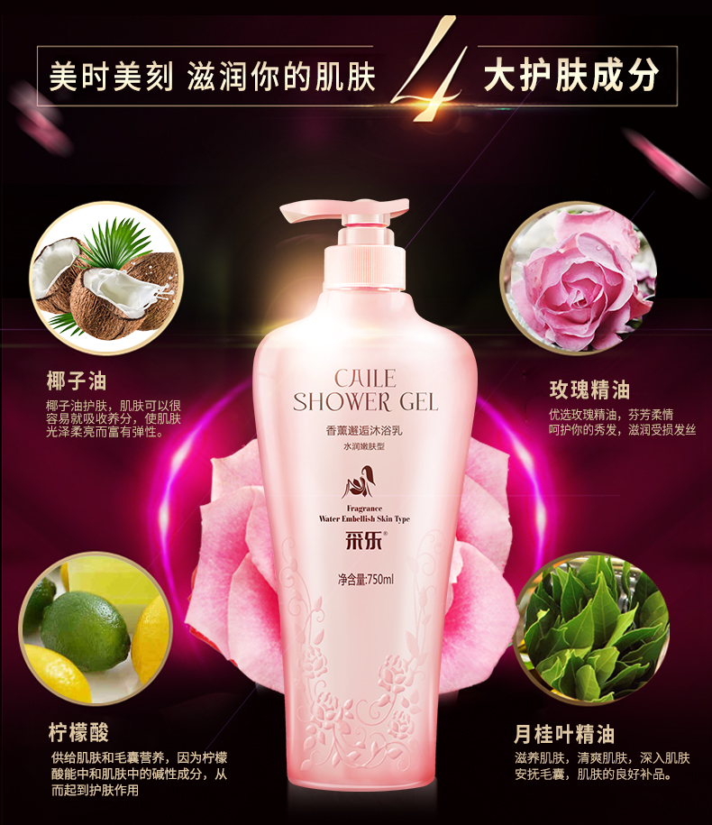 采乐男女士香水沐浴露身体乳滋润香味持久留香72小时家庭组合套装