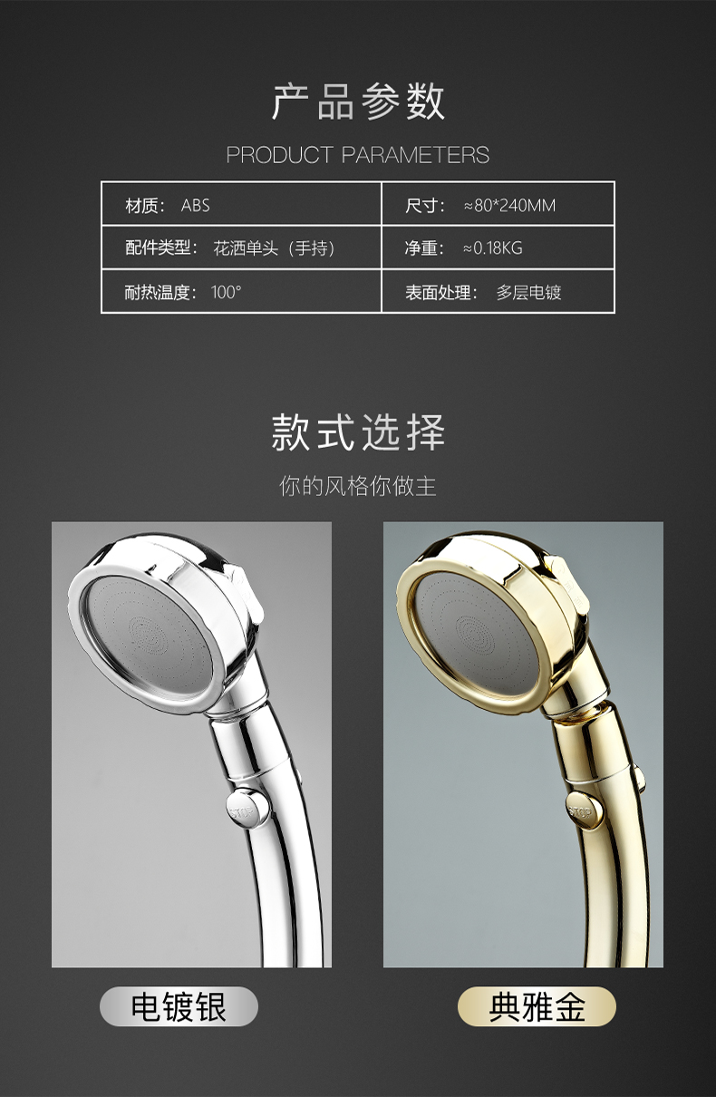 浴室花洒喷头增压淋浴沐浴洗澡高压大出水莲蓬头家用淋雨手持套装