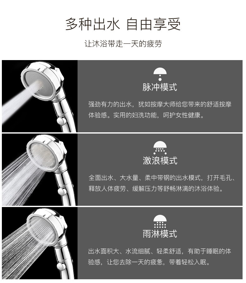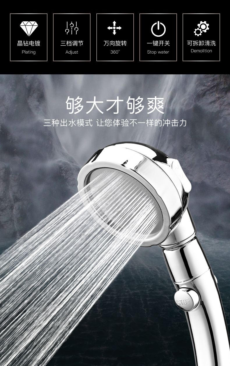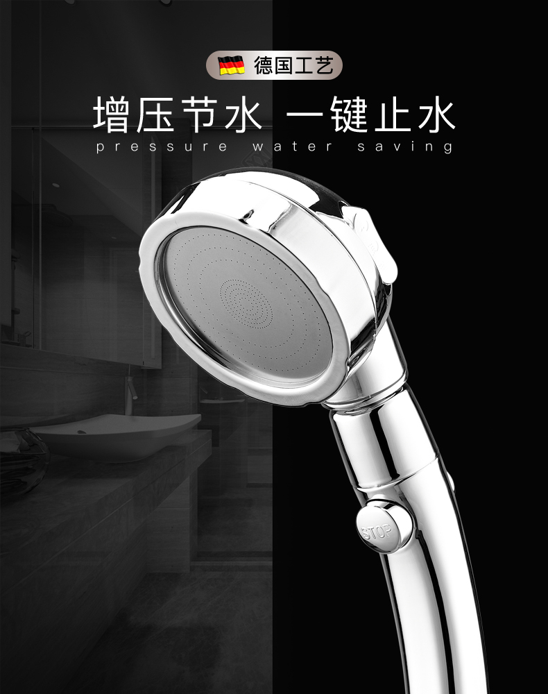 【德国品质】淋浴花洒喷头,节水增压,万向旋转,一键止水,三挡开关,随心所浴,怎么舒服怎么洗,畅快淋浴【赠运费险】