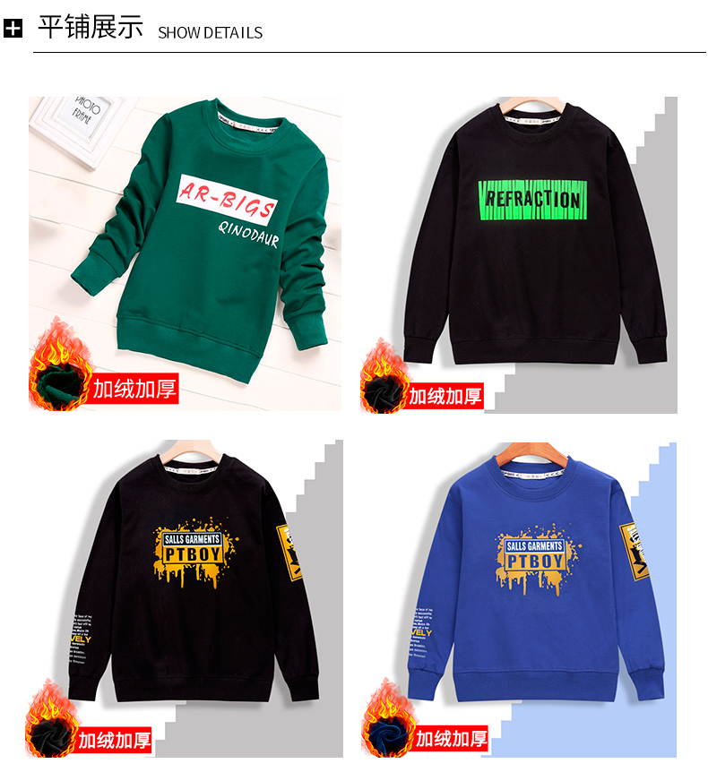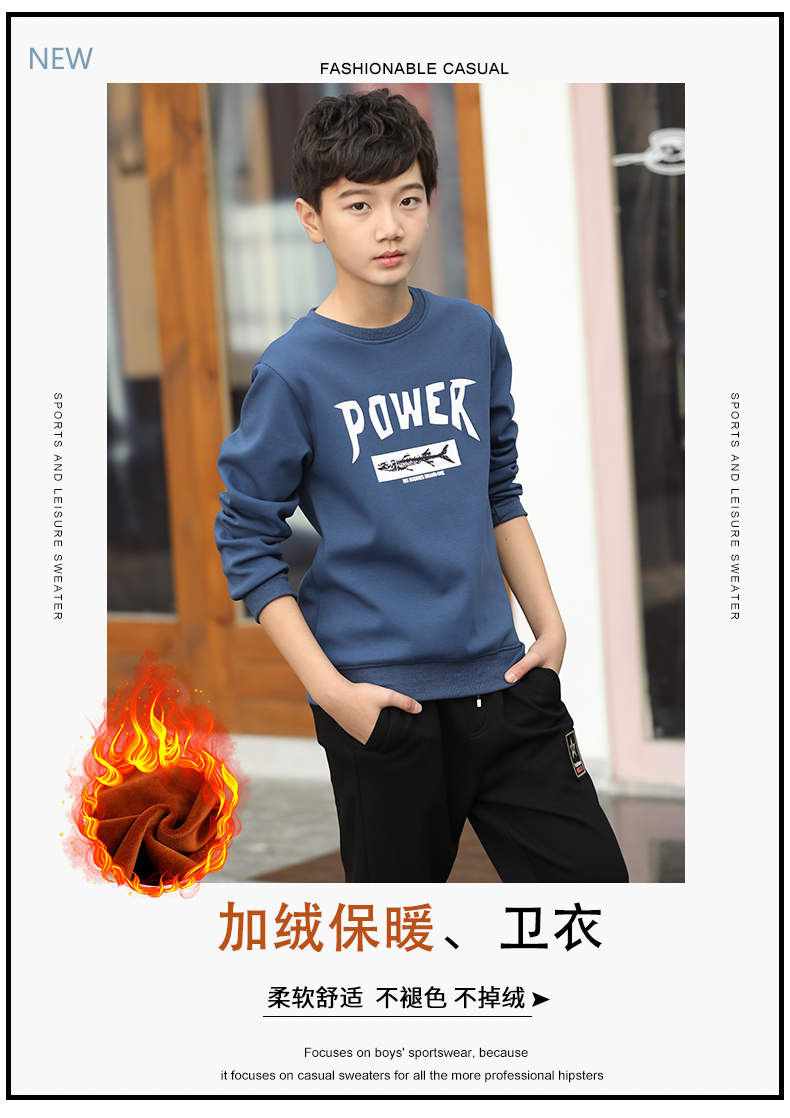男童加绒打底衫中大童冬装儿童卫衣加厚长袖T恤洋气男孩保暖上衣