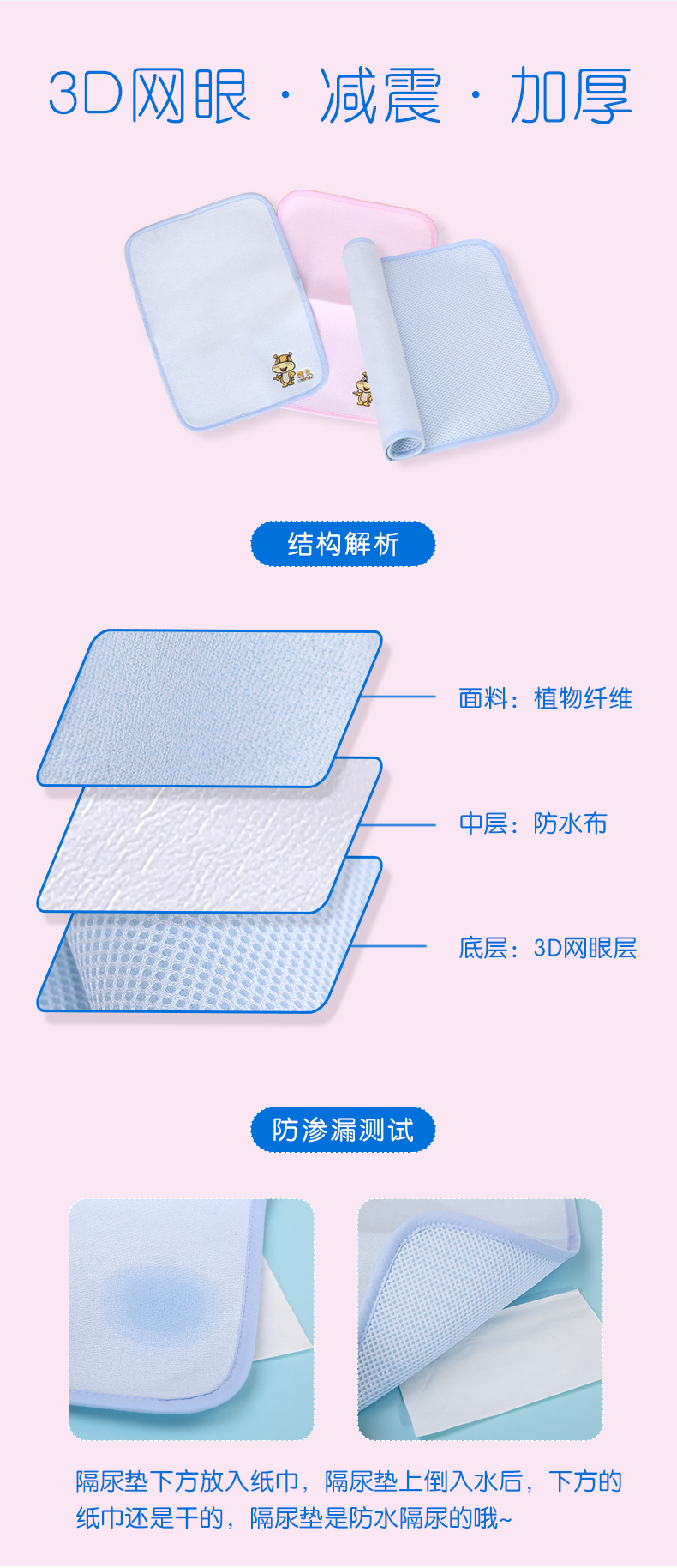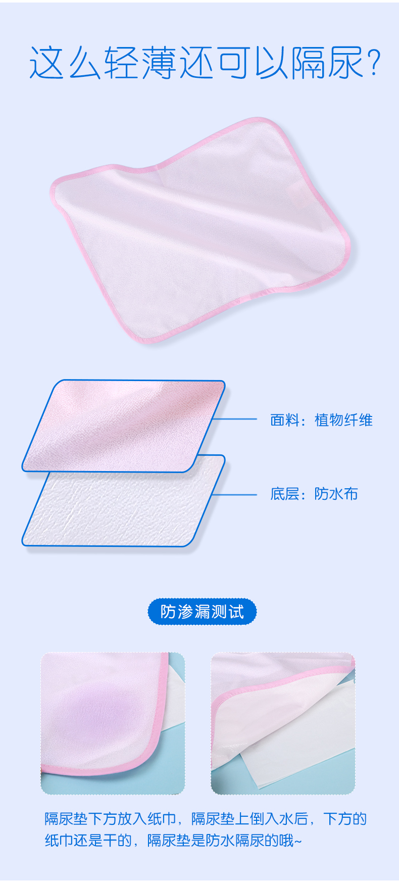 【实惠2条装】A类品质,采用优质针织吸水棉,安全亲肤舒适,无荧光剂,经过无菌处理,吸水夹棉层,快速吸水,不怕红屁屁,可反复水洗不变形,不仅宝宝适用,女性夜间生理期也可轻松应对哦!