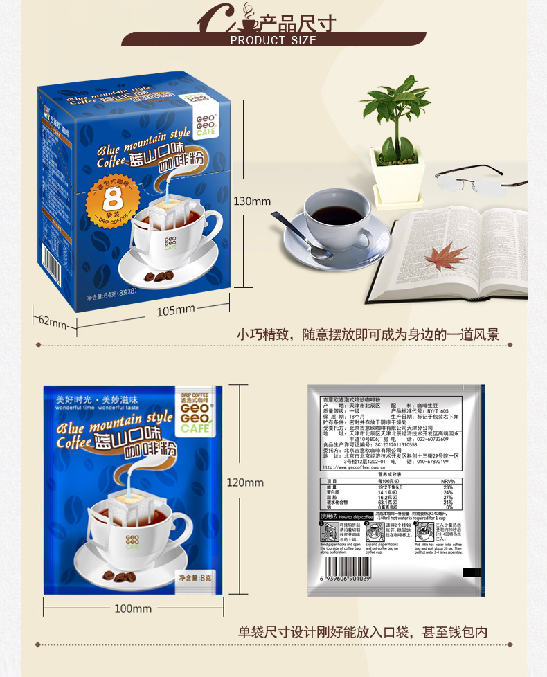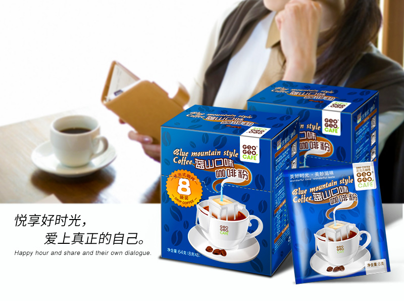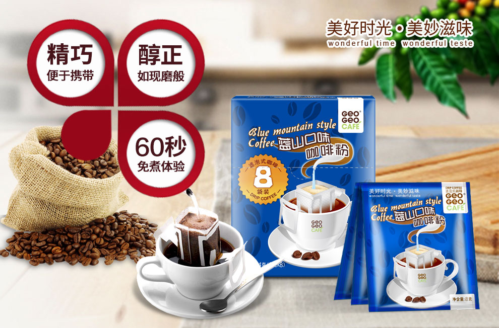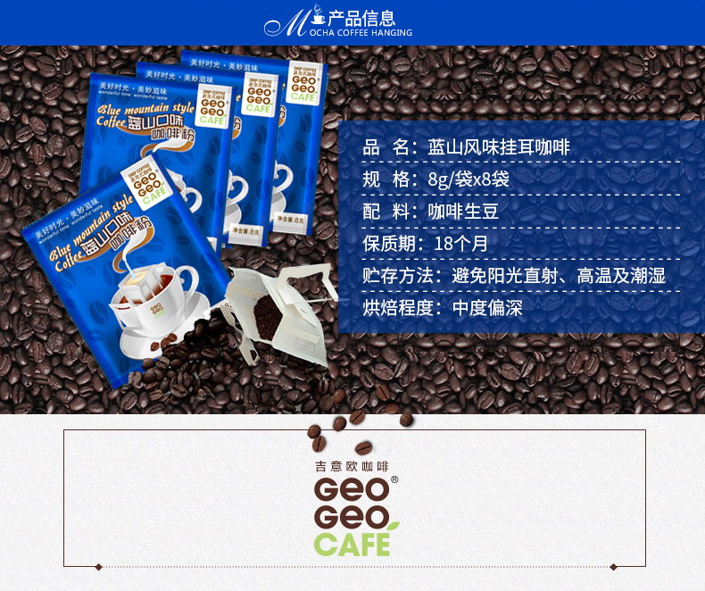 吉意欧GEO蓝山风味拼配挂耳咖啡滤泡式手冲耳挂纯黑咖啡粉8袋