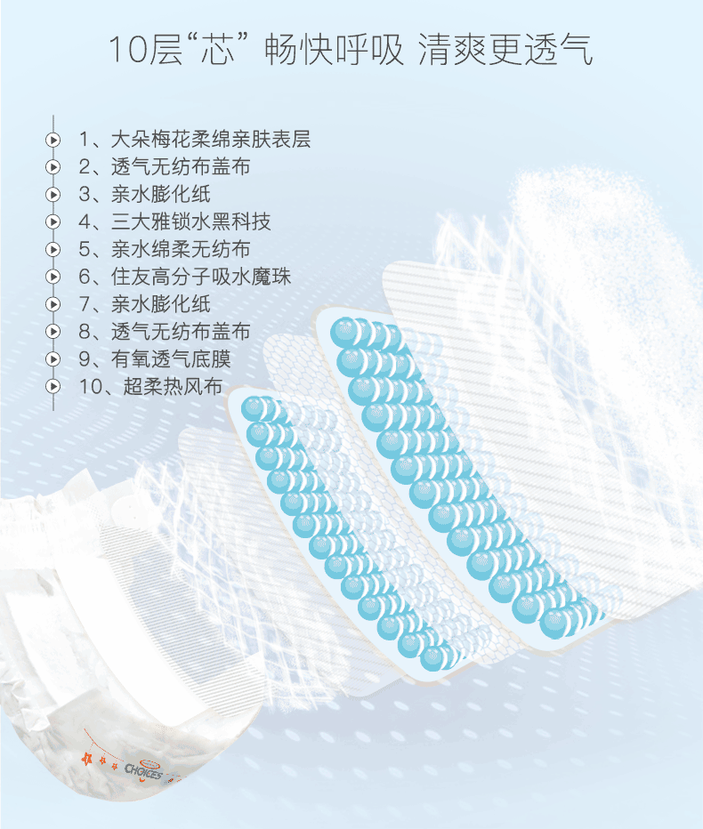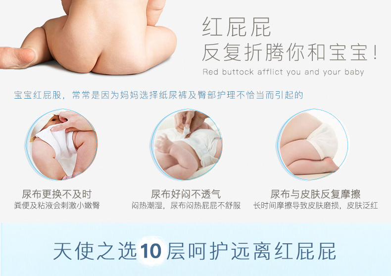 棉柔亲肤层,瞬吸锁水,立体防侧漏,微孔透气底膜,干爽透气,让宝宝远离红屁屁,360度弹力腰围,让宝宝活动自由!超柔亲肤!宝妈必备!【赠送运费险】