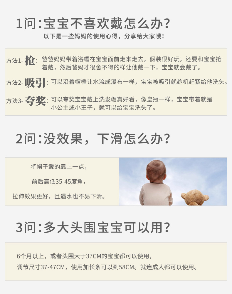 全新柔软婴儿护耳浴帽,卡扣设计告别老款魔术贴,安全环保,纯净无味,给宝宝沐浴的舒适体验,防止耳朵进水,宝宝舒心,妈妈放心~